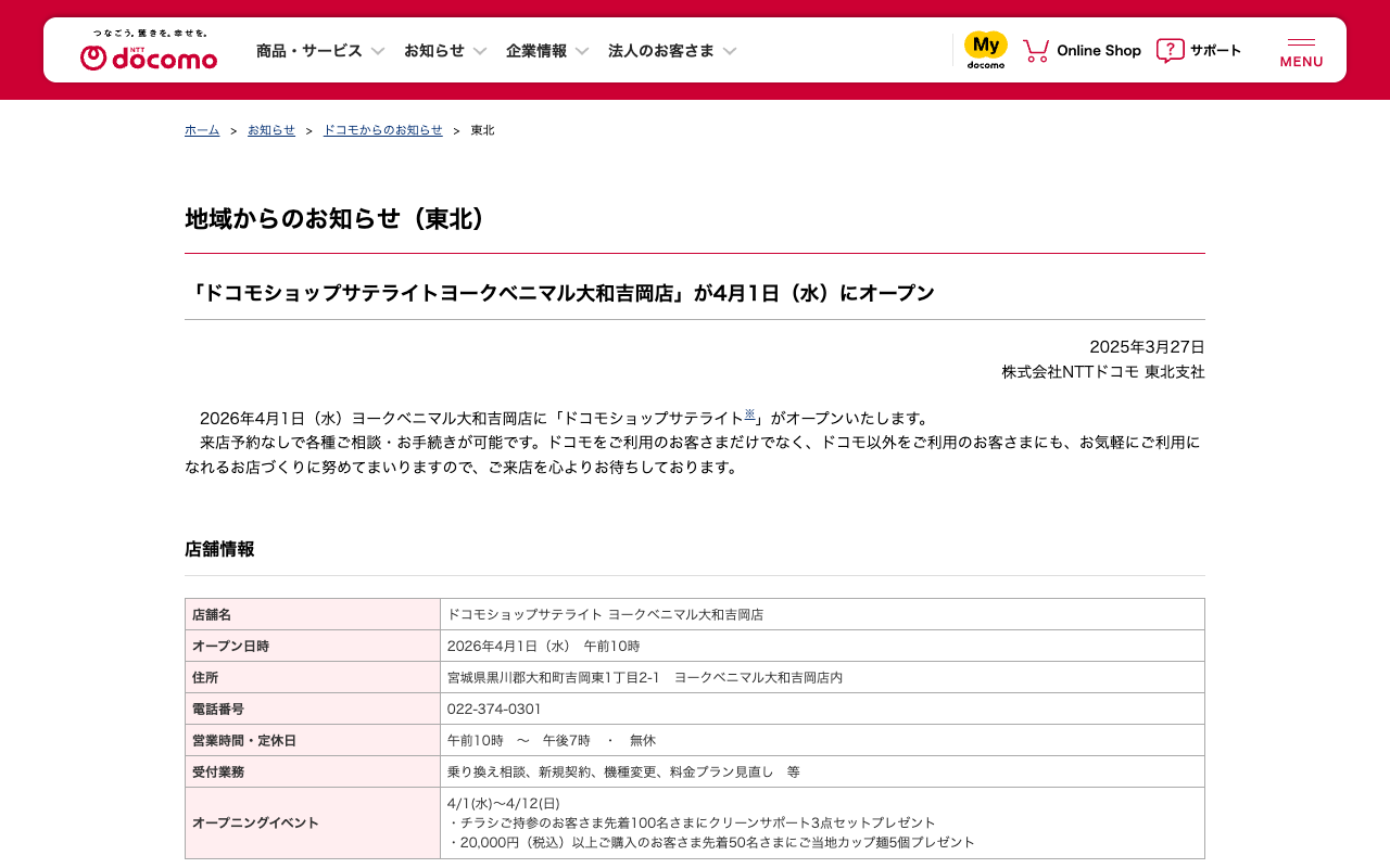 地域からのお知らせ(東北) | お知らせ | NTTドコモ