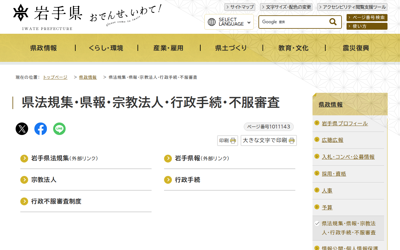 岩手県 - 県法規集・県報・宗教法人・行政手続・不服審査