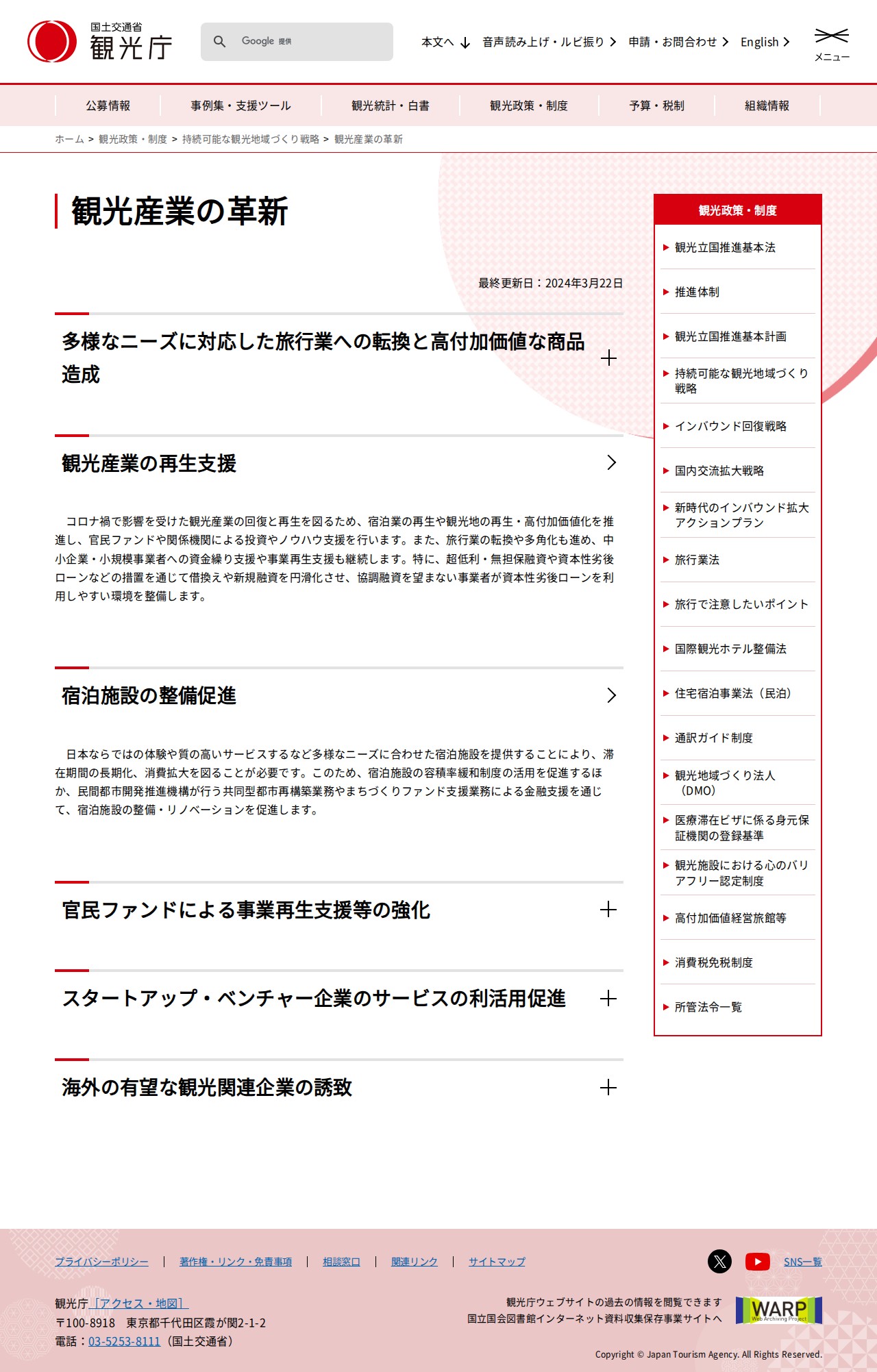 観光産業の革新 | 持続可能な観光地域づくり戦略 | 観光政策・制度 | 観光庁
