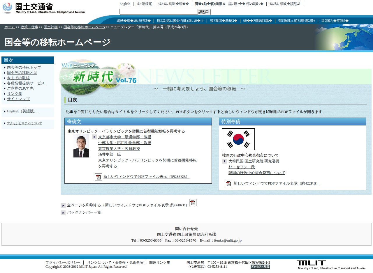 Webニューズレター新時代Vol.76(平成26年3月) - 国会等の移転ホームページ - 国土交通省 - 保存されたスクリーンショット