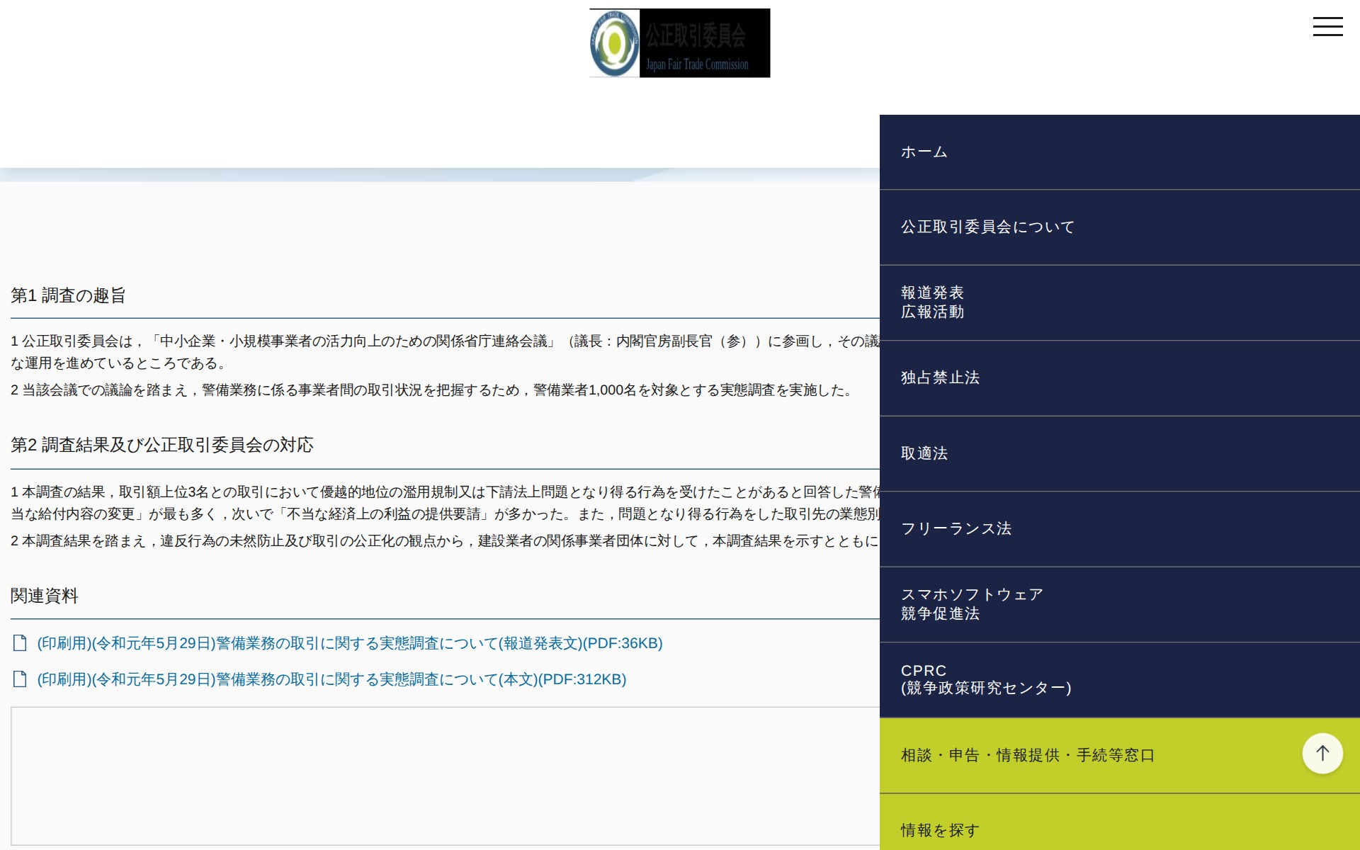 (令和元年5月29日)警備業務の取引に関する実態調査について | 公正取引委員会 - 保存されたスクリーンショット