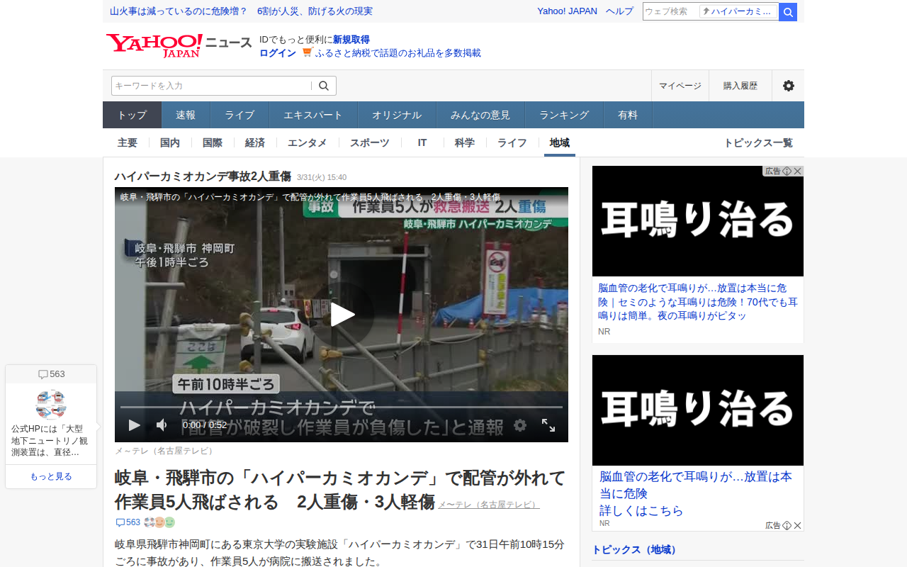ハイパーカミオカンデ事故2人重傷 - Yahoo!ニュース