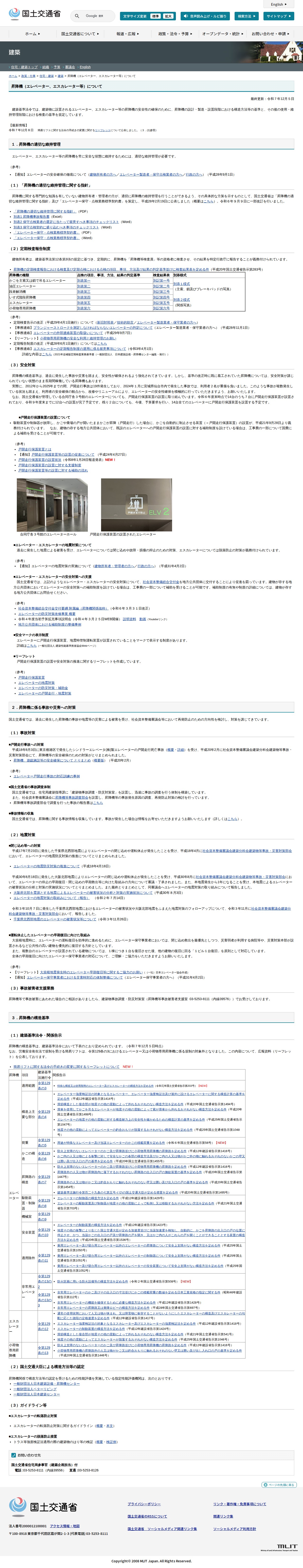 建築:昇降機(エレベーター、エスカレーター等)について - 国土交通省