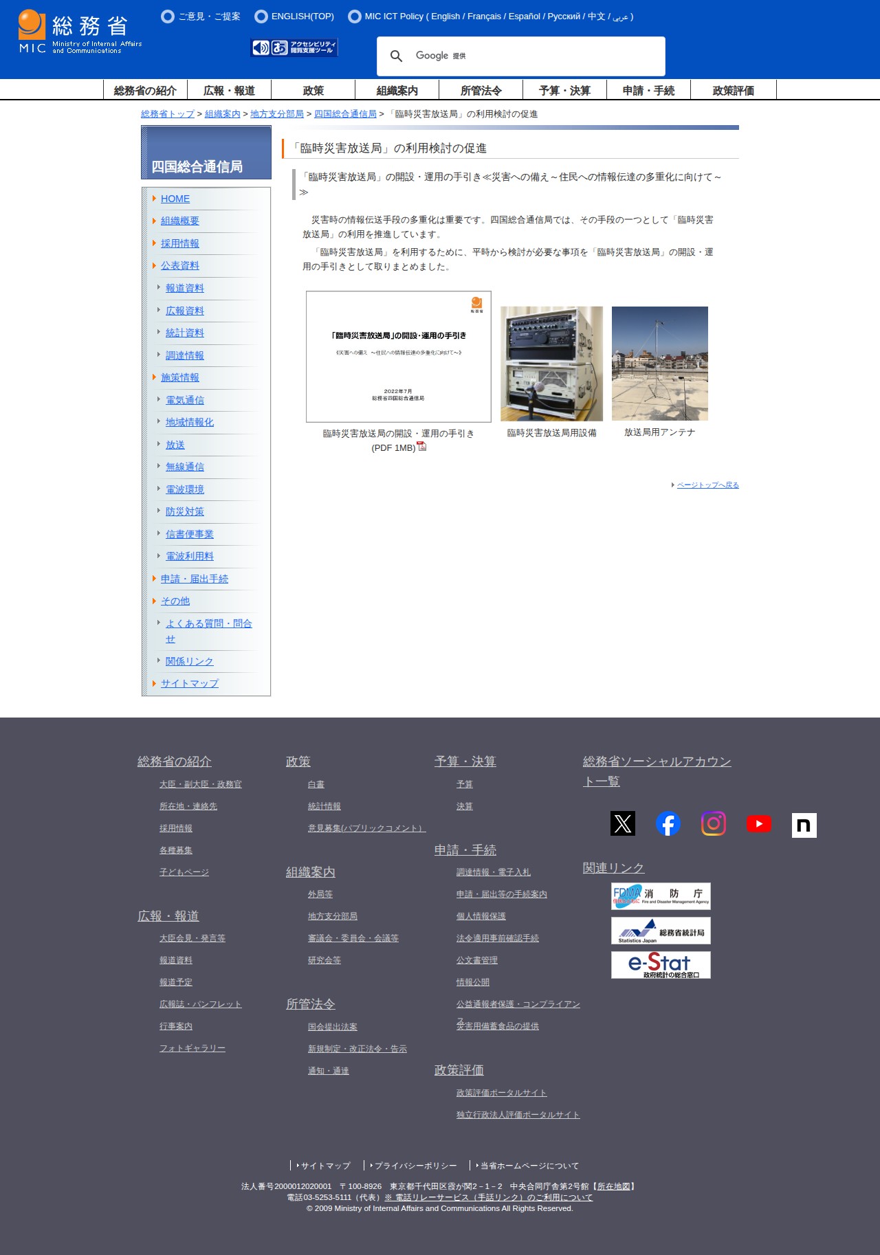 総務省|四国総合通信局|「臨時災害放送局」の利用検討の促進