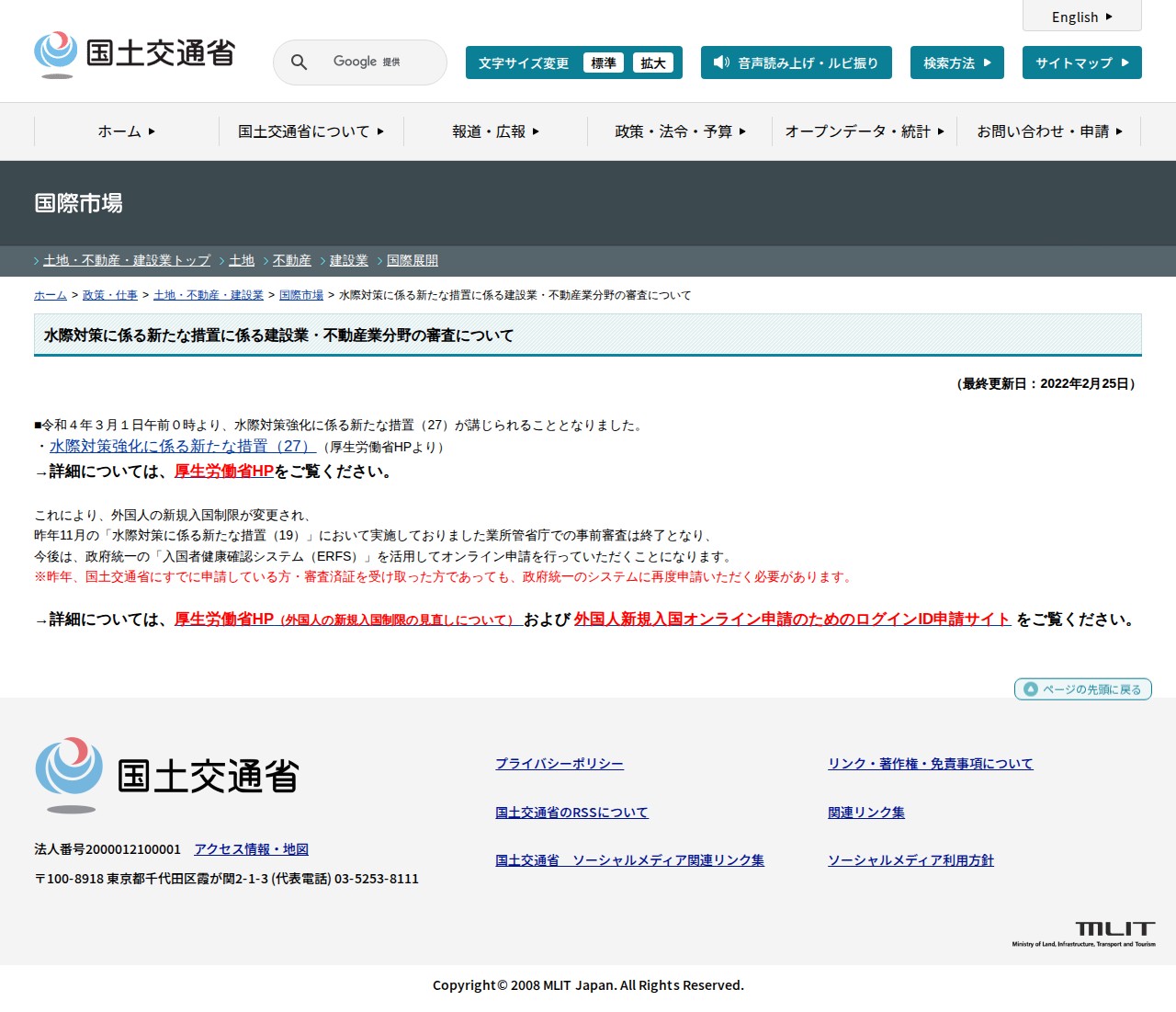 国際市場:水際対策に係る新たな措置に係る建設業・不動産業分野の審査について - 国土交通省