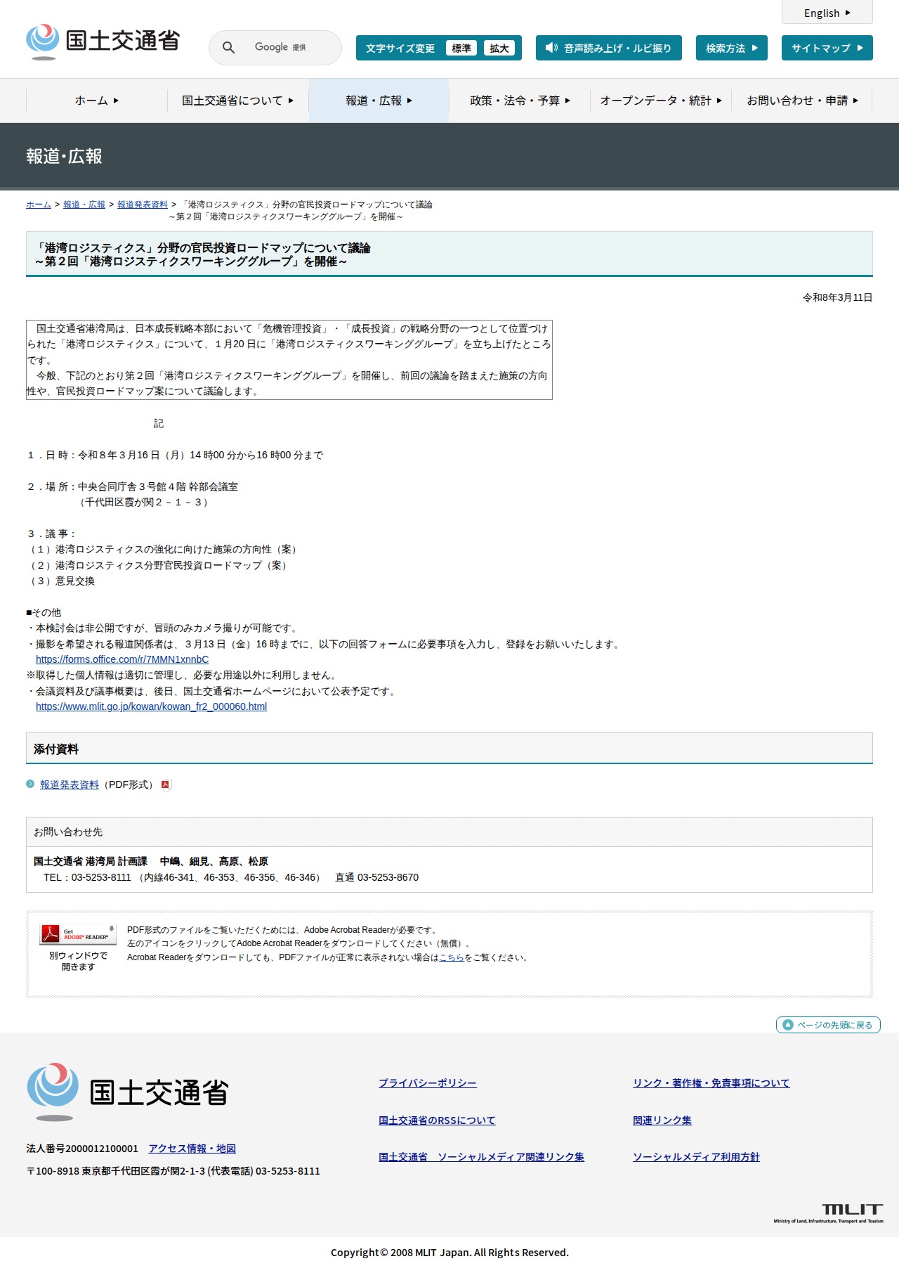 https://www.mlit.go.jp/report/press/port03_hh_000133.html2026年4月8日 01:02 JST•アーカイブページ・viewer・ダウンロードは、この保存版を基準に表示されます。