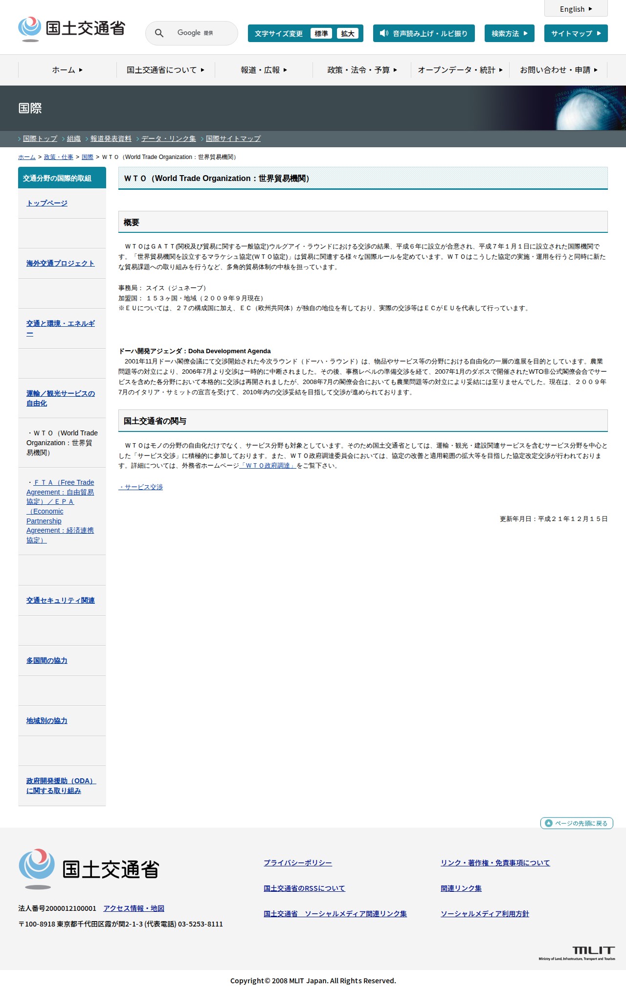 国際:WTO(World Trade Organization:世界貿易機関) - 国土交通省