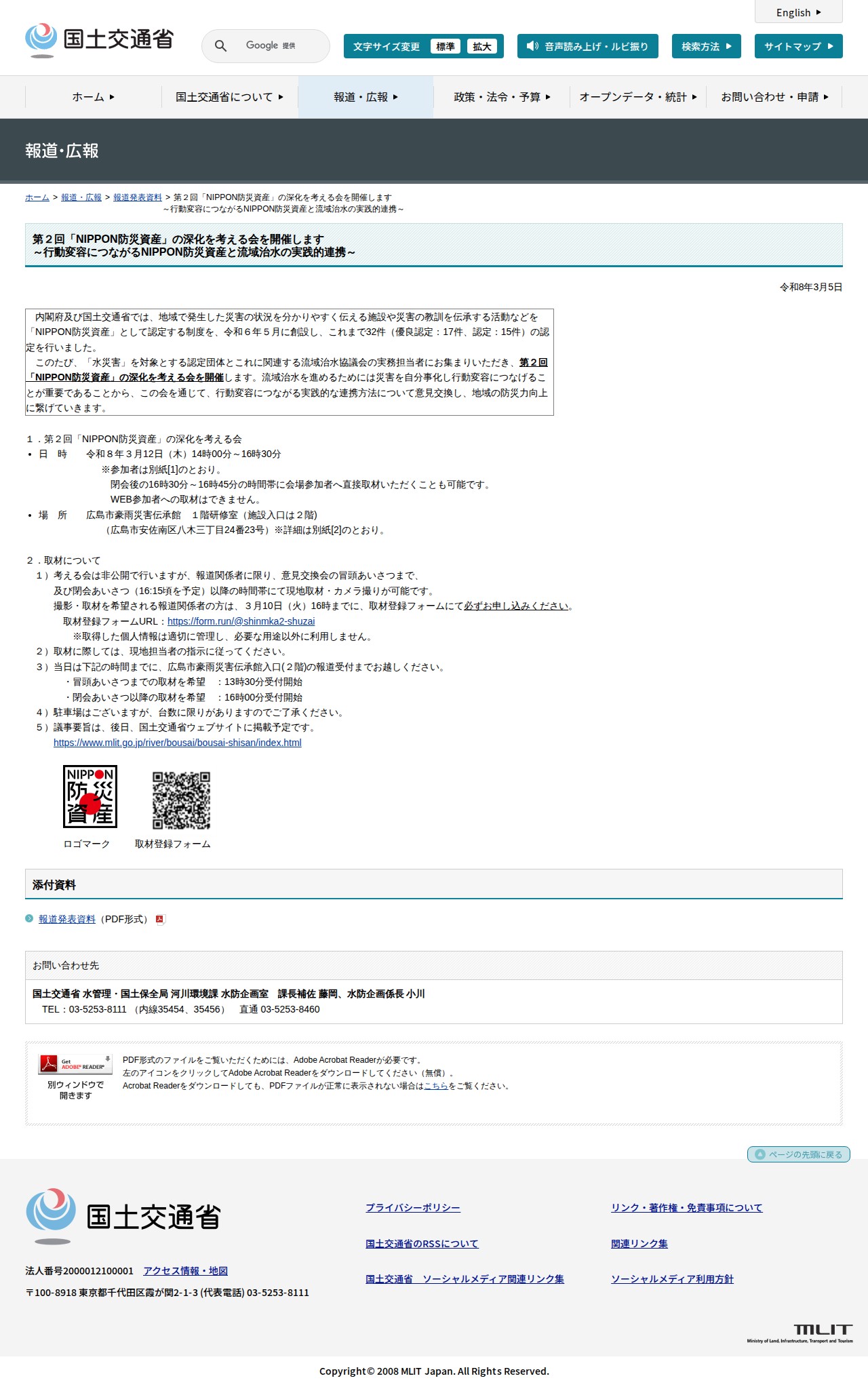 報道発表資料:第2回「NIPPON防災資産」の深化を考える会を開催します<br>~行動変容につながるNIPPON防災資産と流域治水の実践的連携~ - 国土交通省 - 保存されたスクリーンショット