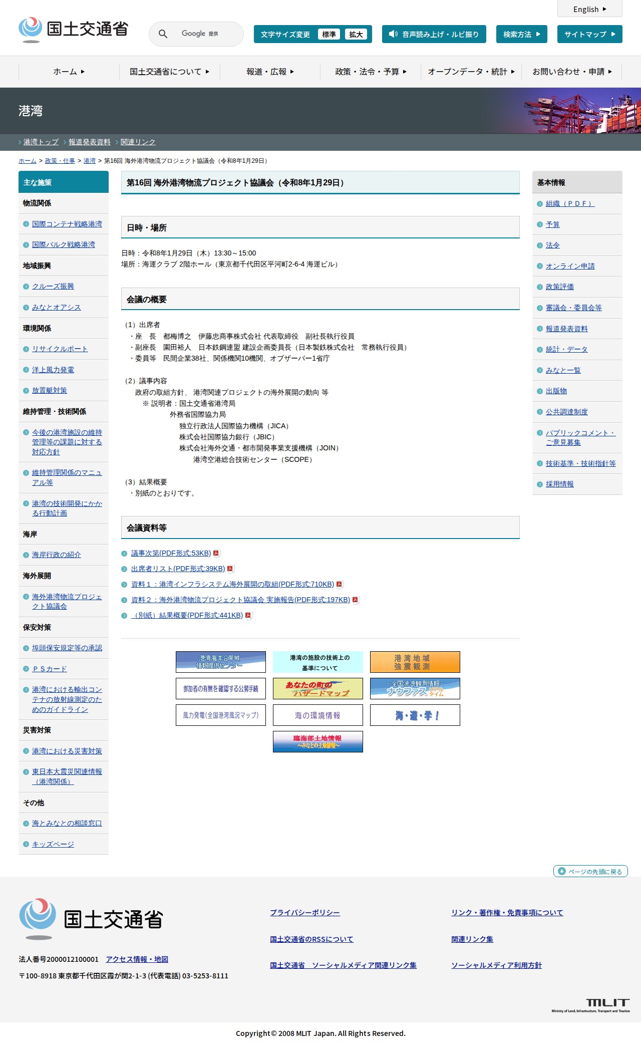 港湾:第16回 海外港湾物流プロジェクト協議会(令和8年1月29日) - 国土交通省 - 保存されたスクリーンショット