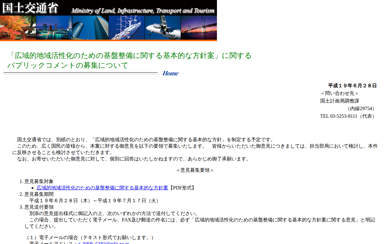 「広域的地域活性化のための基盤整備に関する基本的な方針案」に関するパブリックコメントの募集について