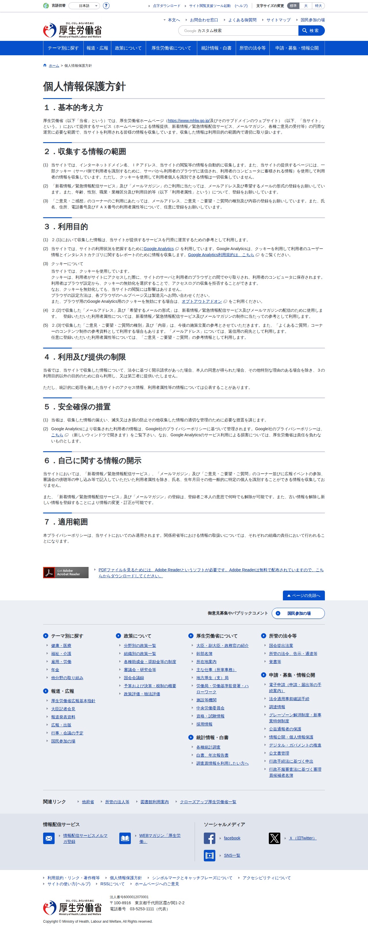 個人情報保護方針|厚生労働省 - 保存されたスクリーンショット