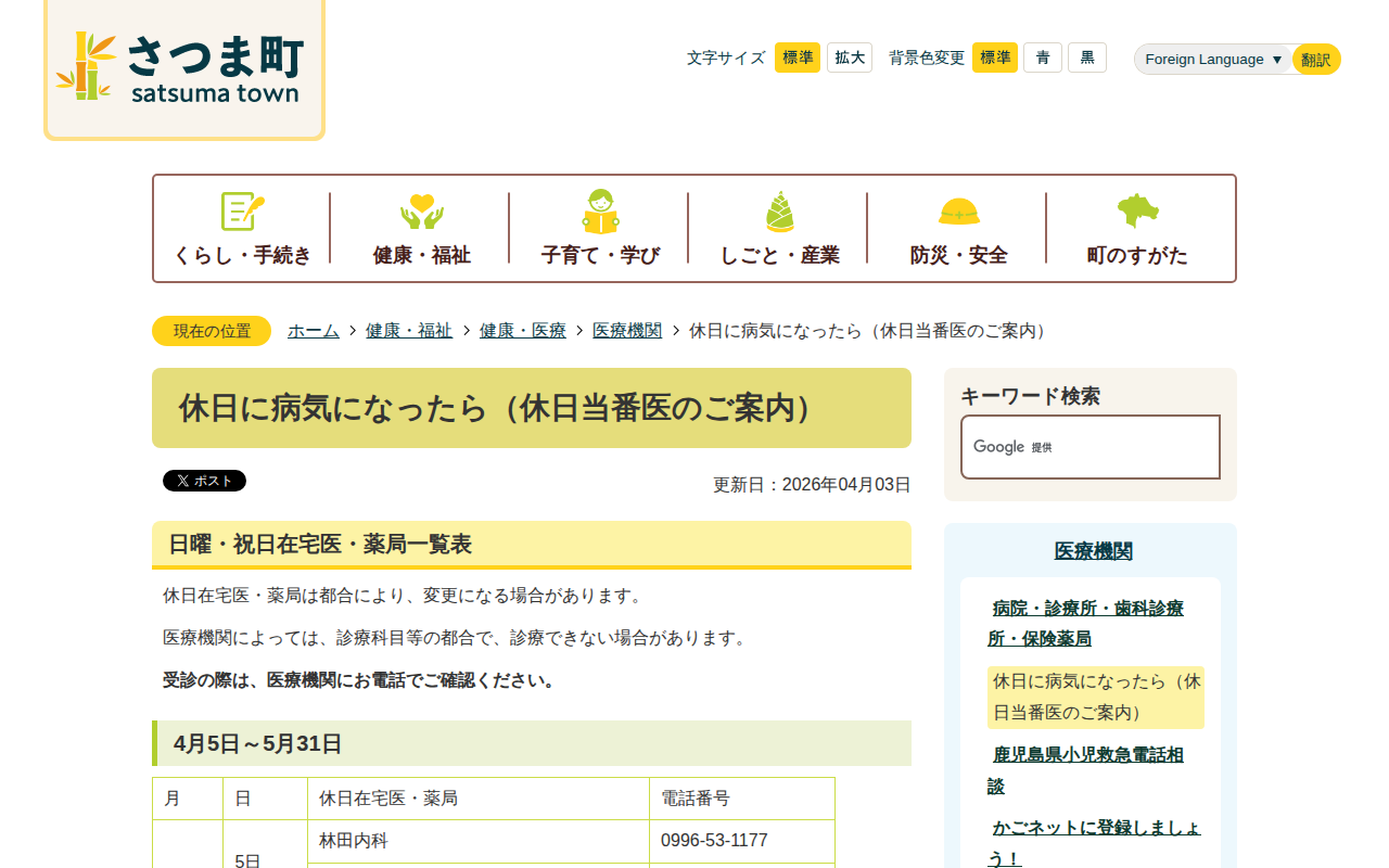 休日に病気になったら(休日当番医のご案内)/さつま町公式ホームページ