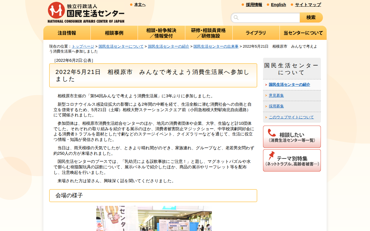 2022年5月21日 相模原市 みんなで考えよう消費生活展へ参加しました(国民生活センターの紹介)_国民生活センター
