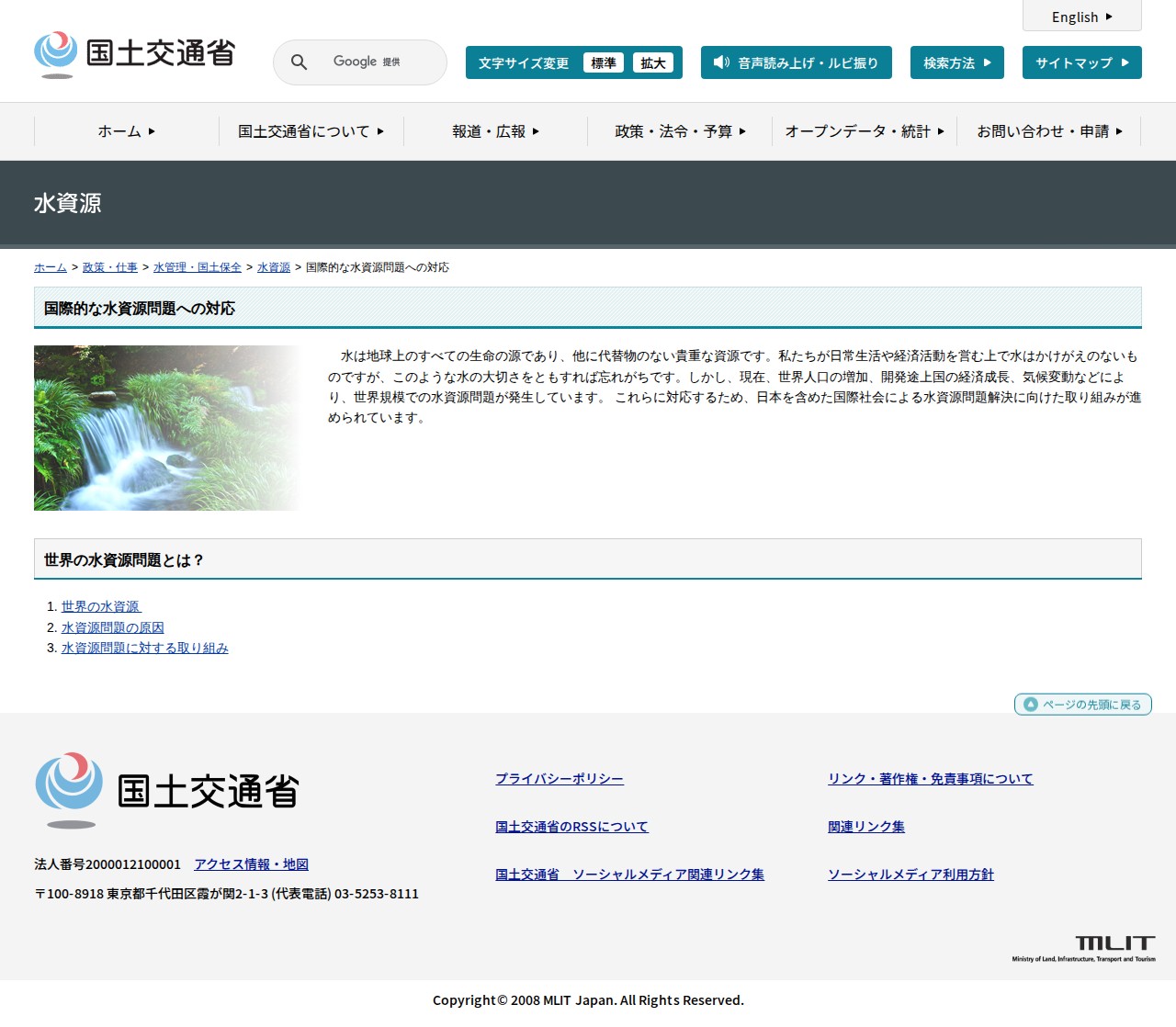 水資源:国際的な水資源問題への対応 - 国土交通省 - 保存されたスクリーンショット