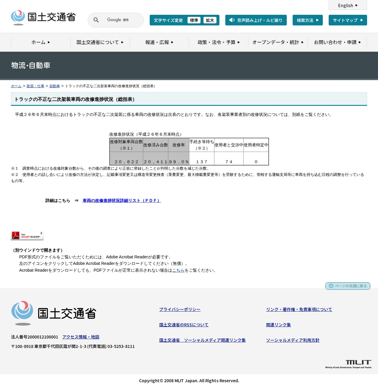 自動車:トラックの不正な二次架装車両の改修進捗状況(総括表) - 国土交通省 - 保存されたスクリーンショット