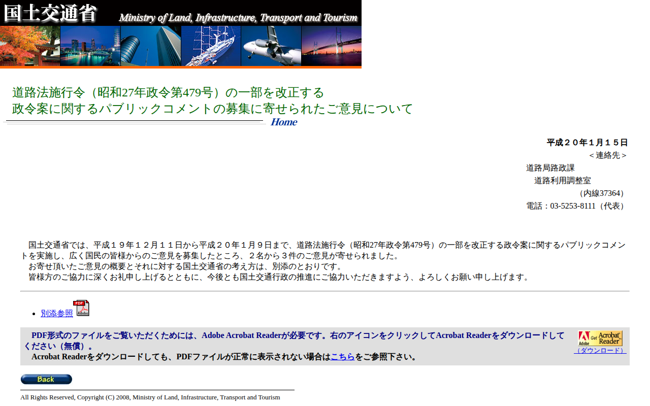 道路法施行令(昭和27年政令第479号)の一部を改正する政令案に関するパブリックコメントの募集に寄せられたご意見について