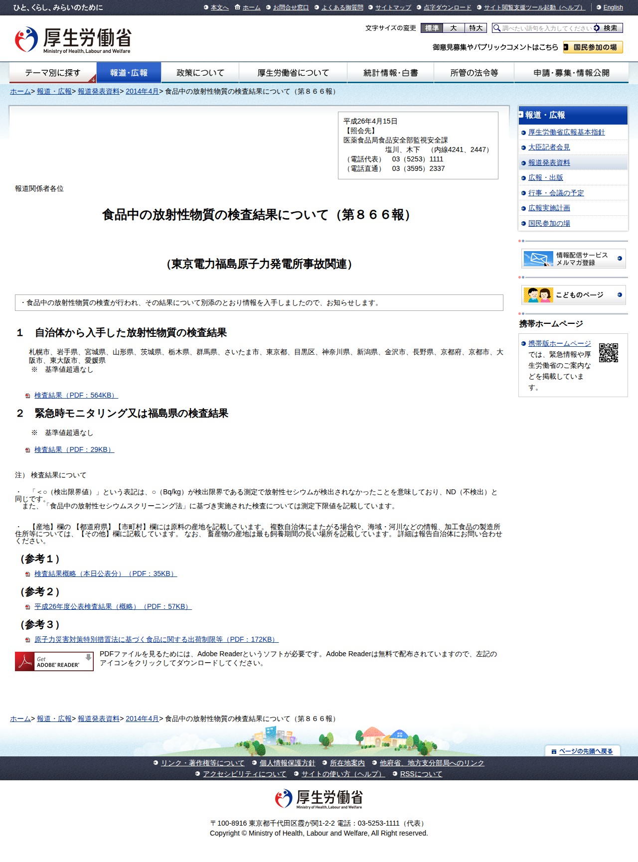 食品中の放射性物質の検査結果について(第866報) |報道発表資料|厚生労働省