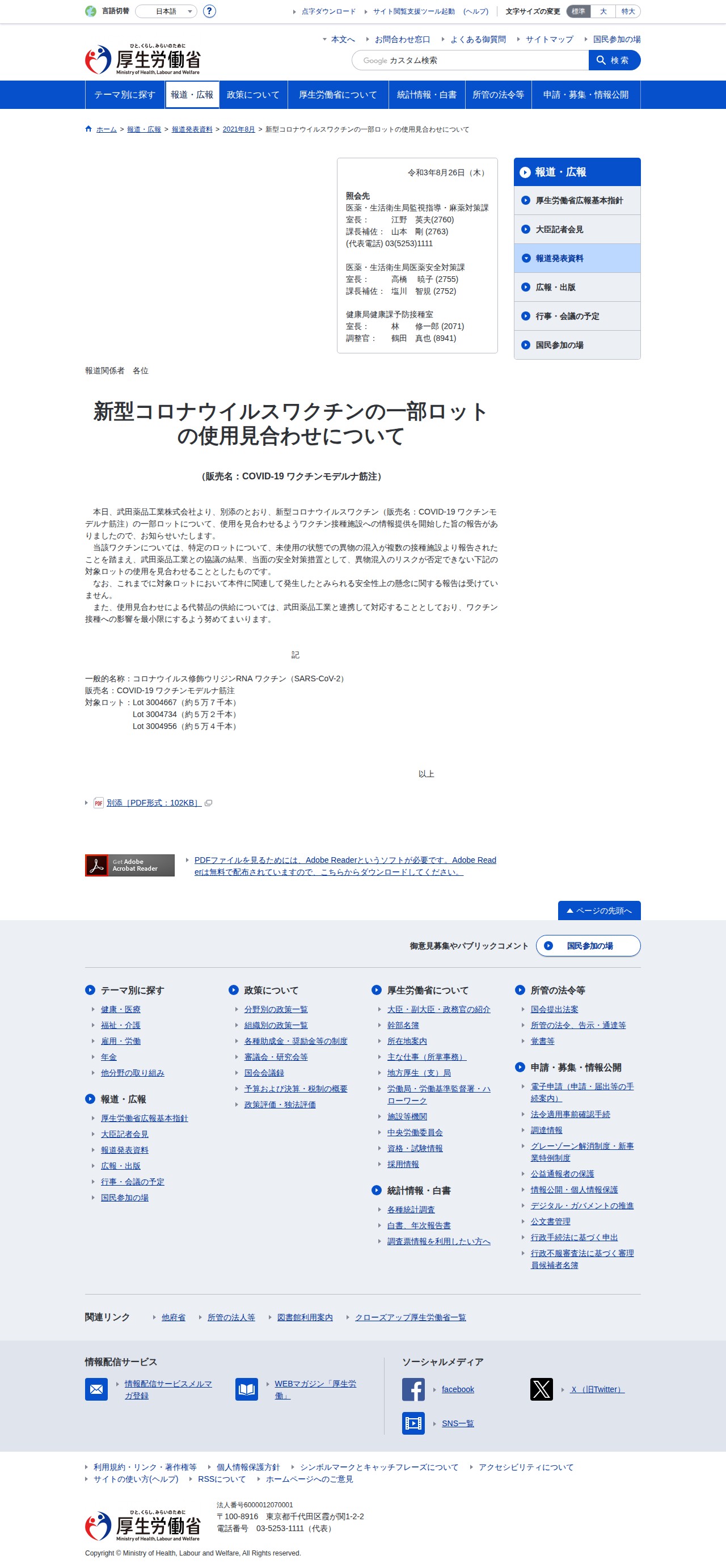 新型コロナウイルスワクチン|報道発表資料|厚生労働省