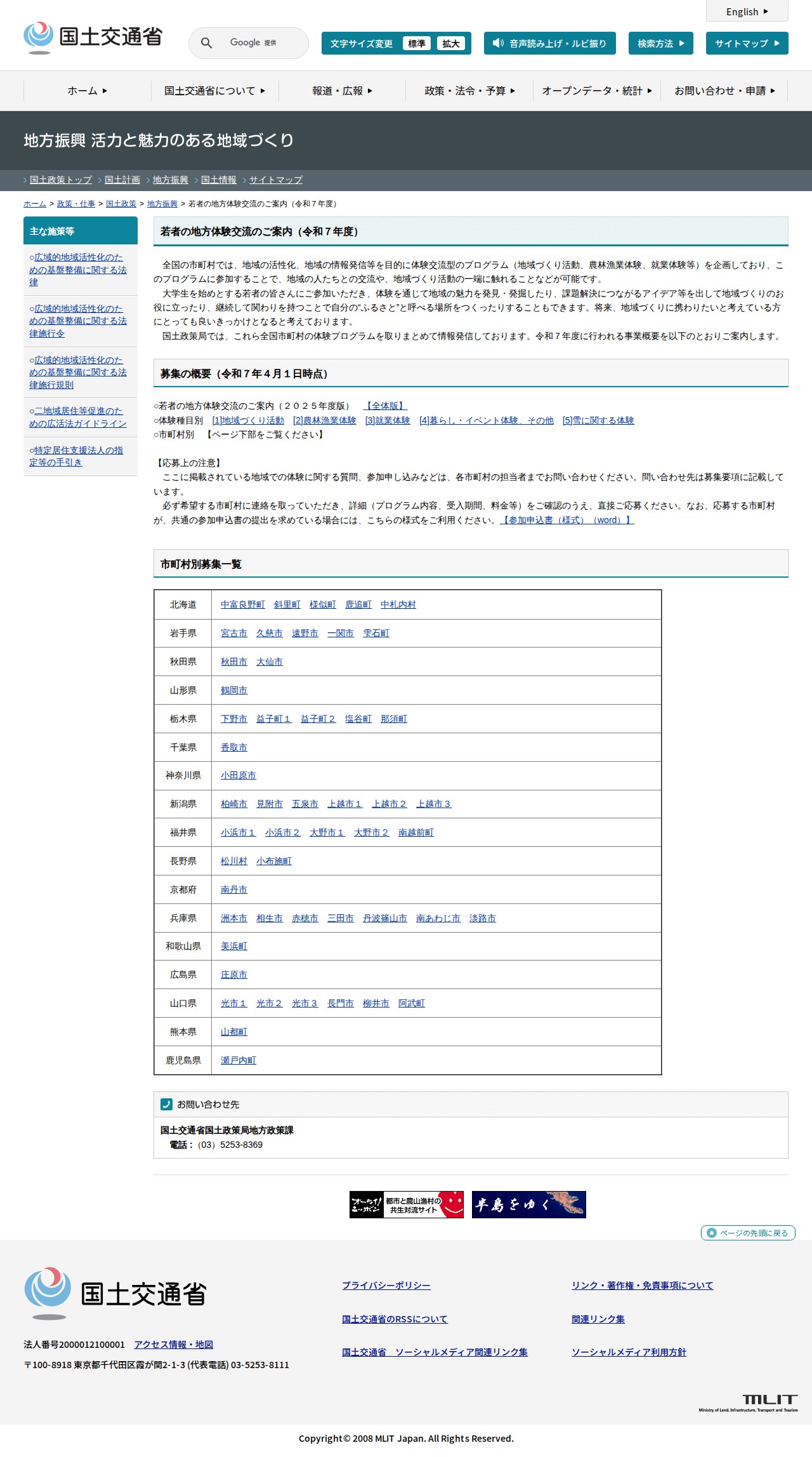 地方振興:若者の地方体験交流のご案内(令和7年度) - 国土交通省