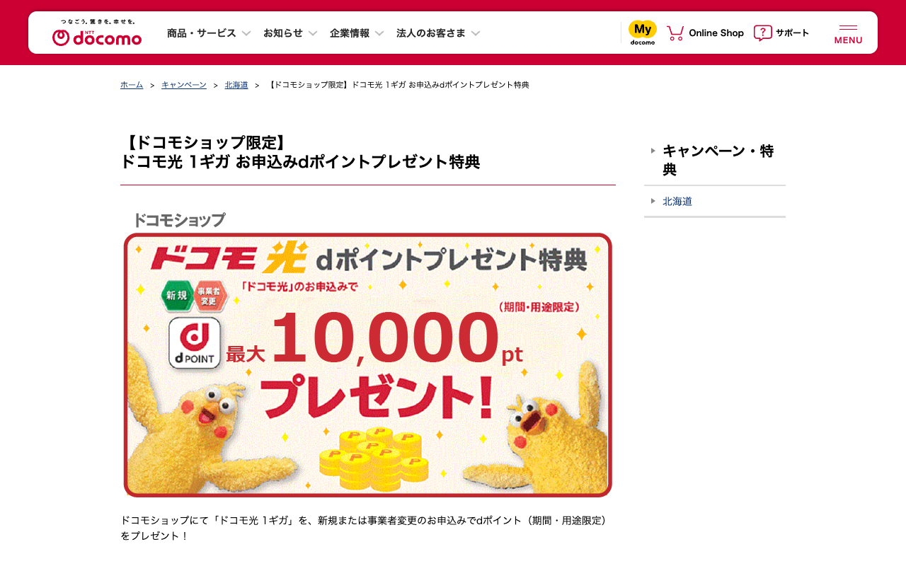 【ドコモショップ限定】ドコモ光 1ギガ お申込みdポイントプレゼント特典NTTドコモ