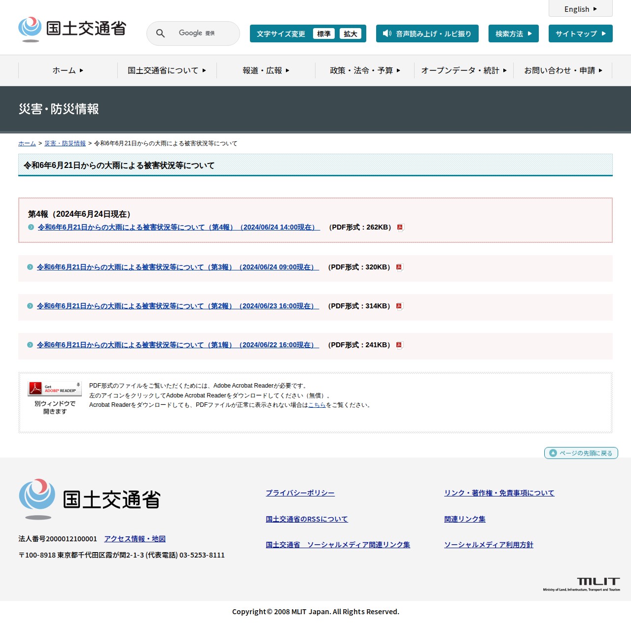 https://www.mlit.go.jp/saigai/saigai_240621.html2026年4月8日 02:32 JST•アーカイブページ・viewer・ダウンロードは、この保存版を基準に表示されます。