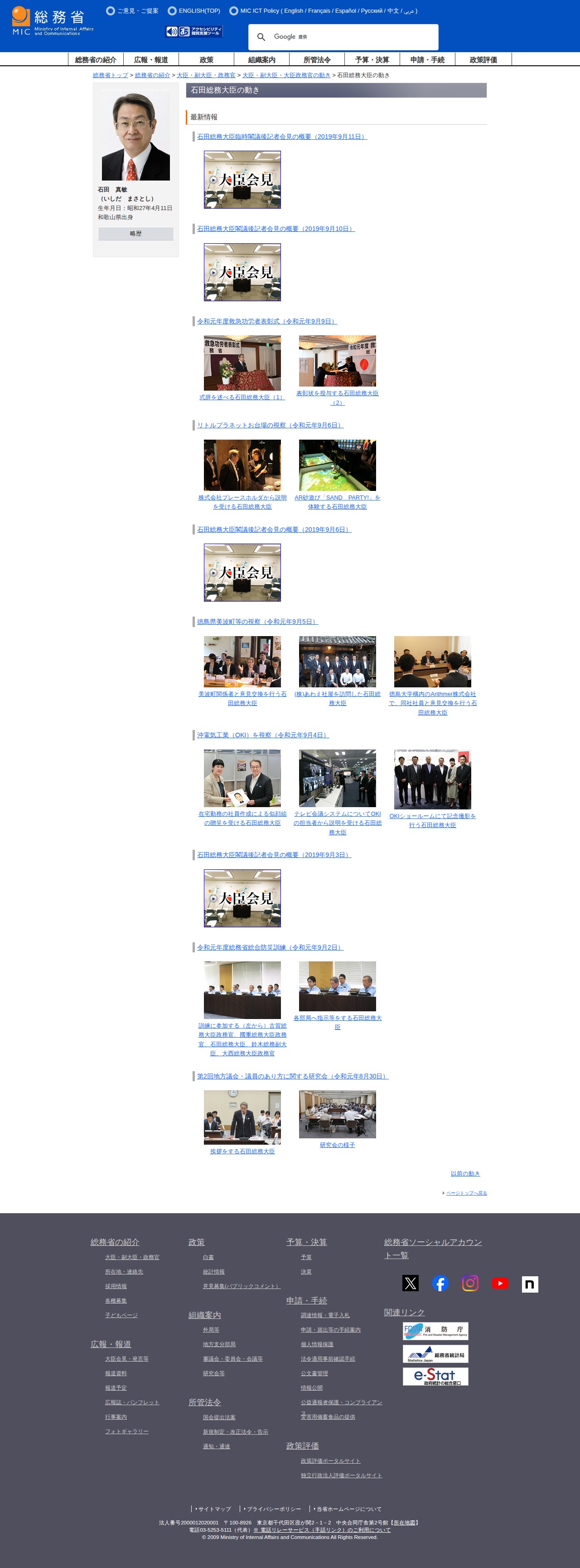 総務省|石田総務大臣の動き