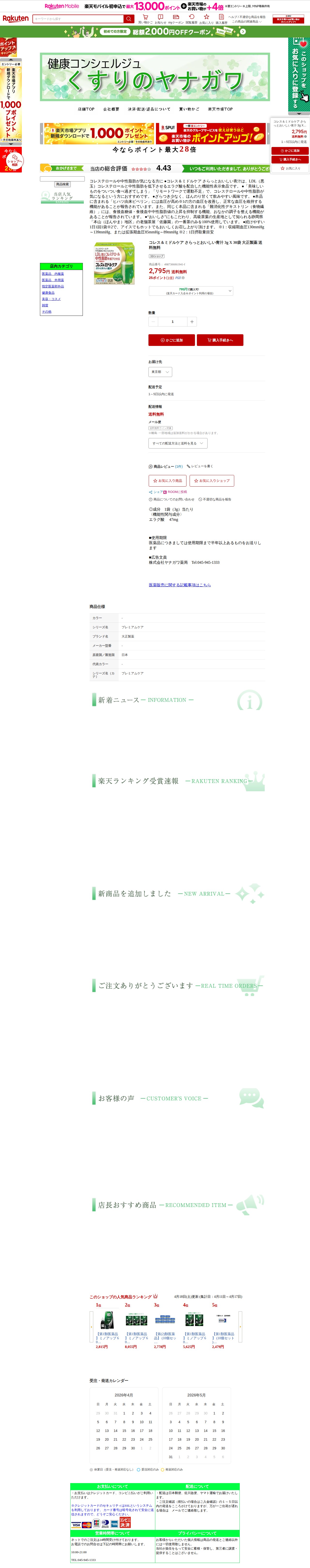 【楽天市場】コレス&ミドルケア さらっとおいしい青汁 3g X 30袋 大正製薬 送料無料:くすりのヤナガワ - 保存されたスクリーンショット