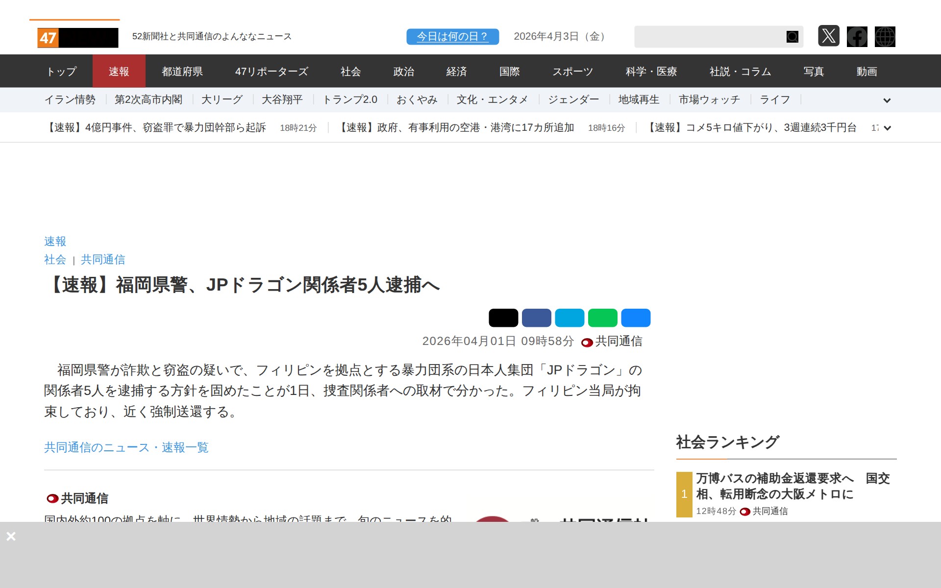 2026年4月3日 19:17 JST·www.47news.jp