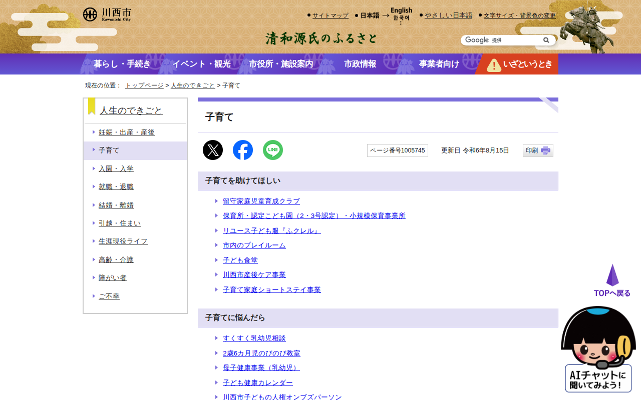 https://www.city.kawanishi.hyogo.jp/life/ikuji.html2026年4月9日 07:09 JST•アーカイブページ・viewer・ダウンロードは、この保存版を基準に表示されます。