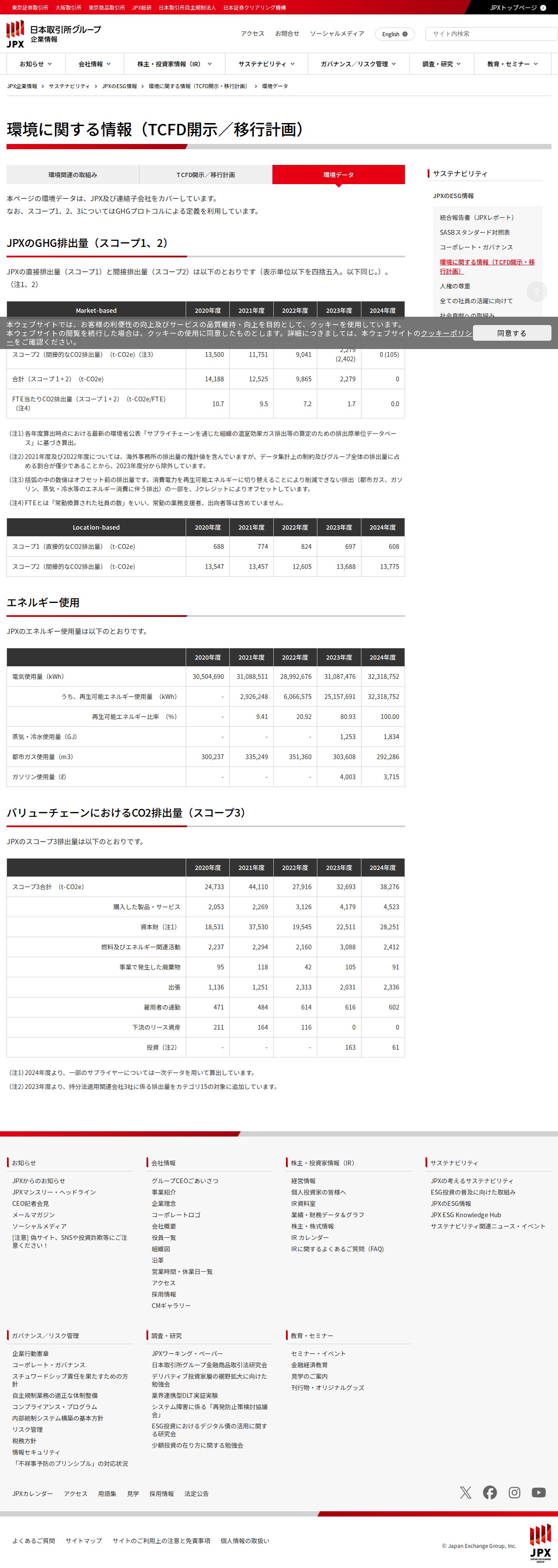 環境データ | 環境に関する情報(TCFD開示/移行計画) | JPXのESG情報 | 日本取引所グループ