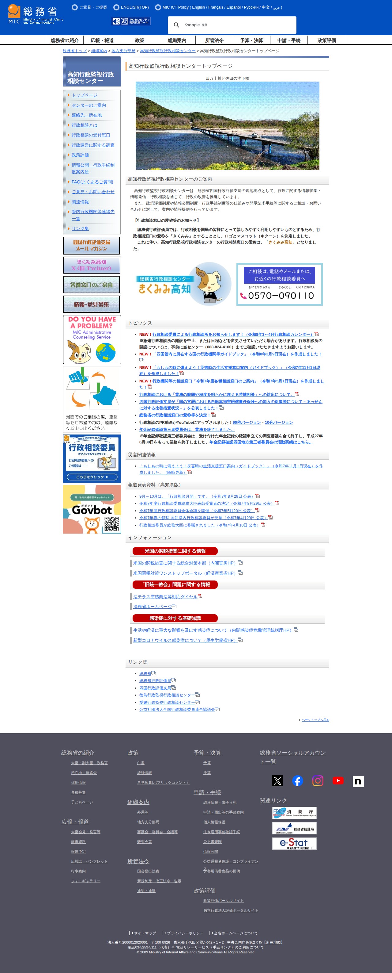 総務省|高知行政監視行政相談センター|高知行政監視行政相談センタートップページ