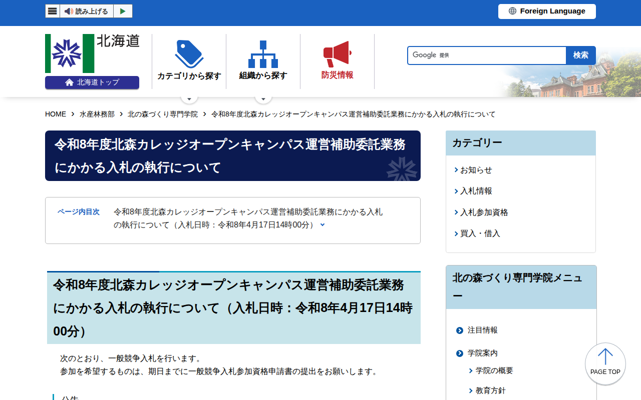 令和8年度北森カレッジオープンキャンパス運営補助委託業務にかかる入札の執行について - 水産林務部北の森づくり専門学院