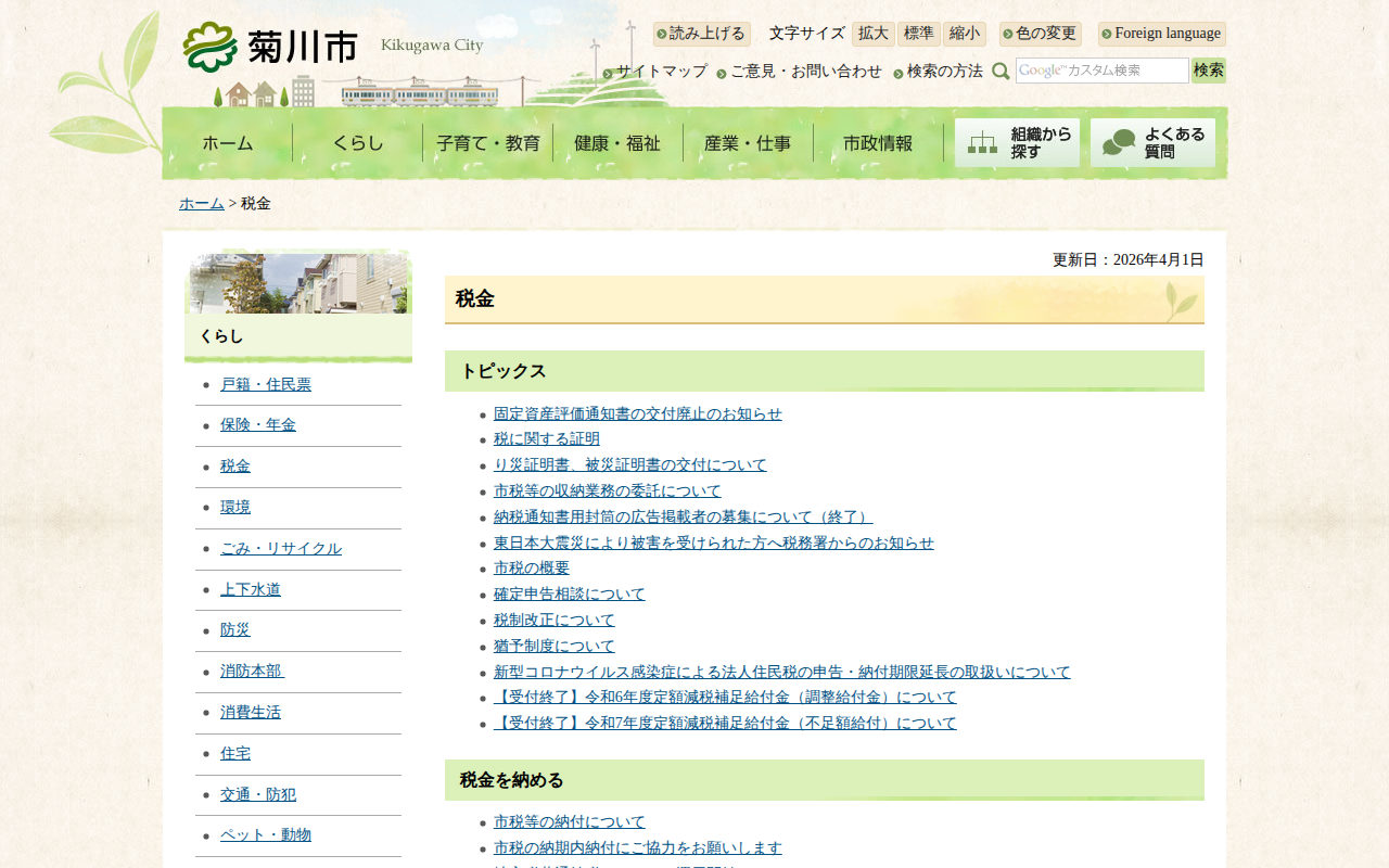 http://www.city.kikugawa.shizuoka.jp/kurashi/zeikin/index.html2026年4月9日 07:09 JST•アーカイブページ・viewer・ダウンロードは、この保存版を基準に表示されます。