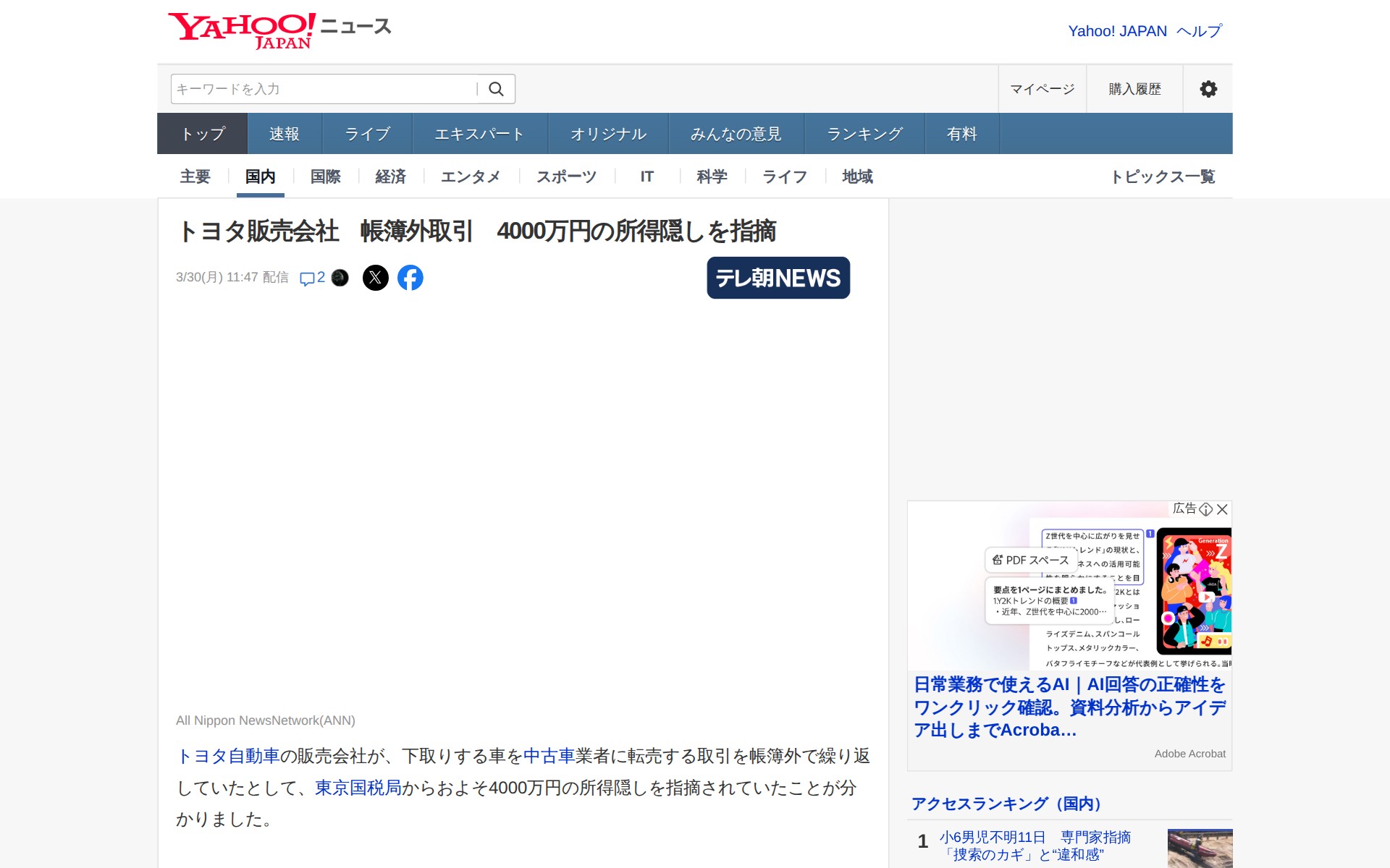 トヨタ販売会社 帳簿外取引 4000万円の所得隠しを指摘(テレビ朝日系(ANN)) - Yahoo!ニュース