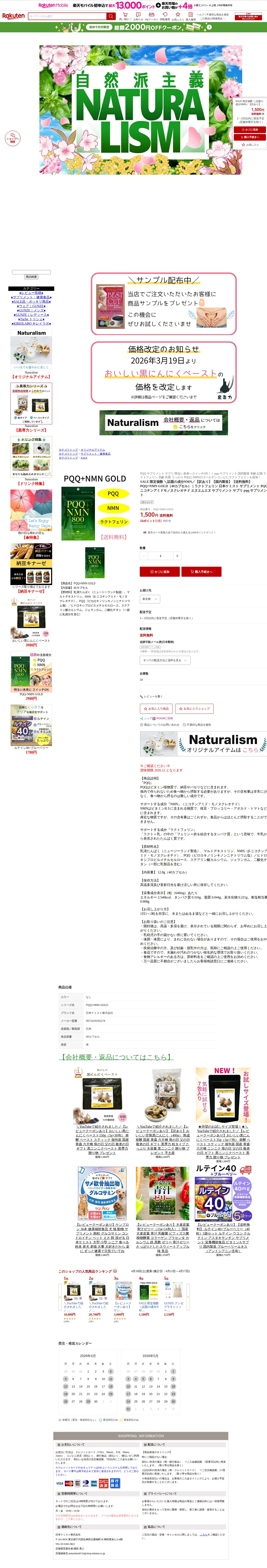 【楽天市場】SALE 限定個数 \話題の成分NMN/【訳あり】【国内製造】【送料無料】PQQ+NMN GOLD(40カプセル)|ラクトフェリン 日本ケミスト サプリメント PQQ ニコチンアミドモノヌクレオチド エヌエムエヌ サプリメント サプリ pqq サプリメント:ナチュラリズム - 保存されたスクリーンショット