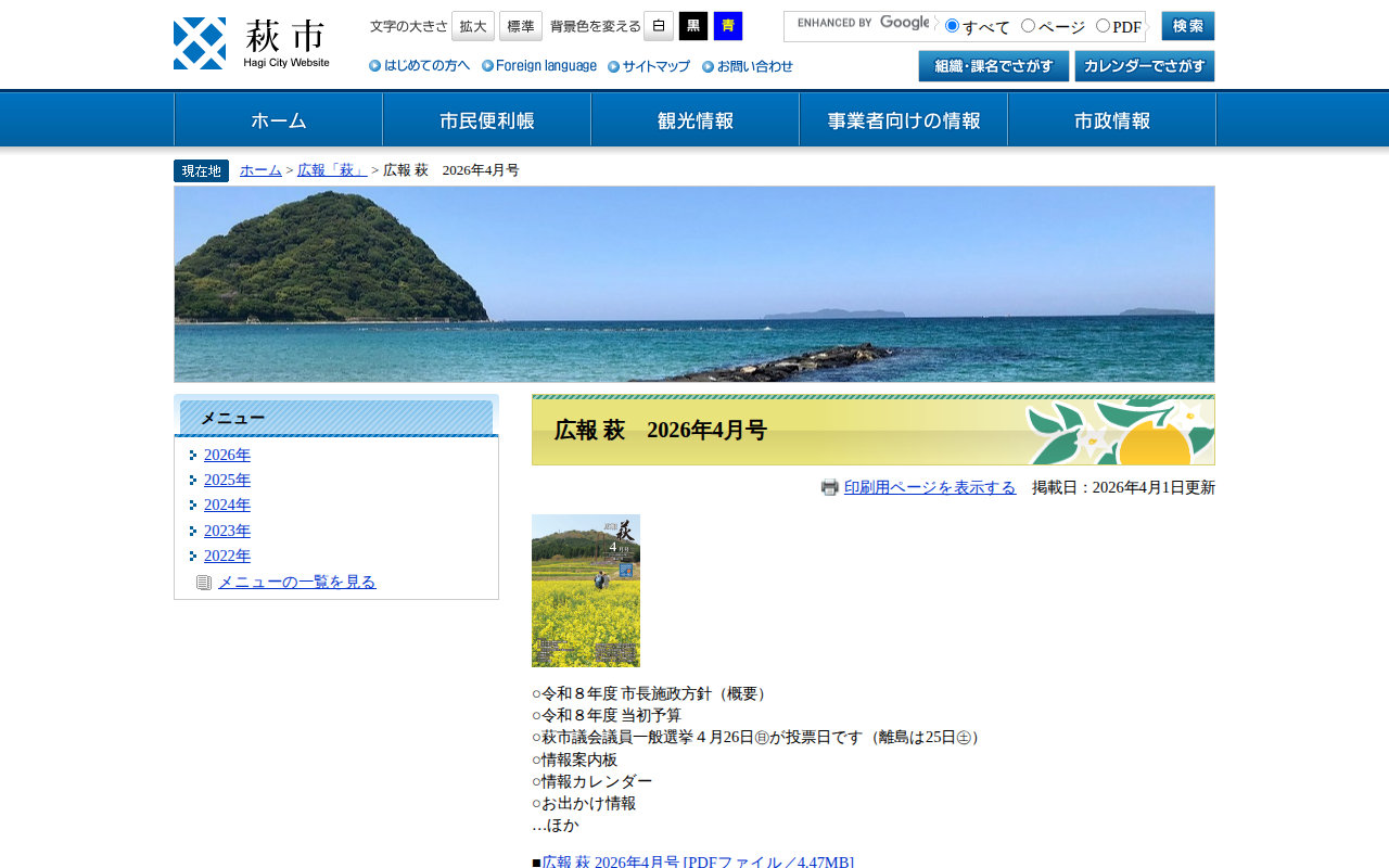 広報 萩 2026年4月号 - 萩市ホームページ