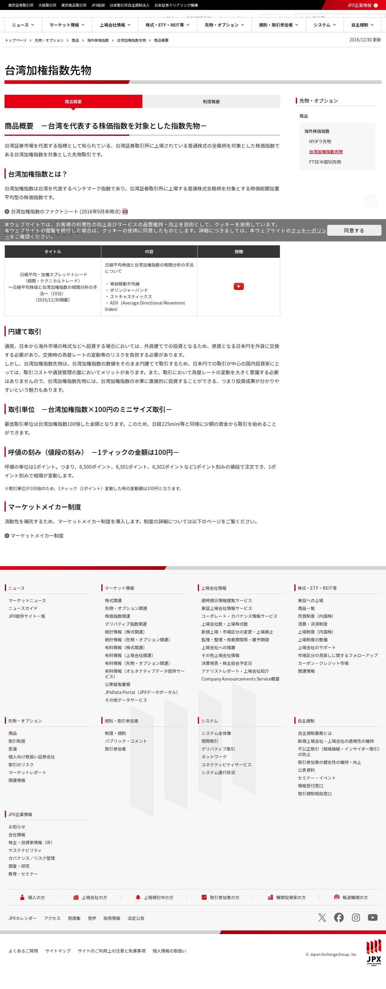 商品概要 | 台湾加権指数先物 | 日本取引所グループ