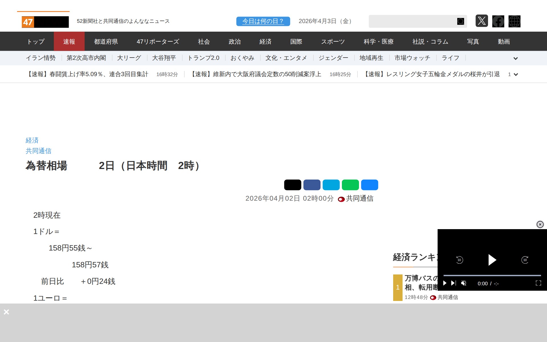 為替相場   2日(日本時間 2時)|47NEWS(よんななニュース) - 保存されたスクリーンショット