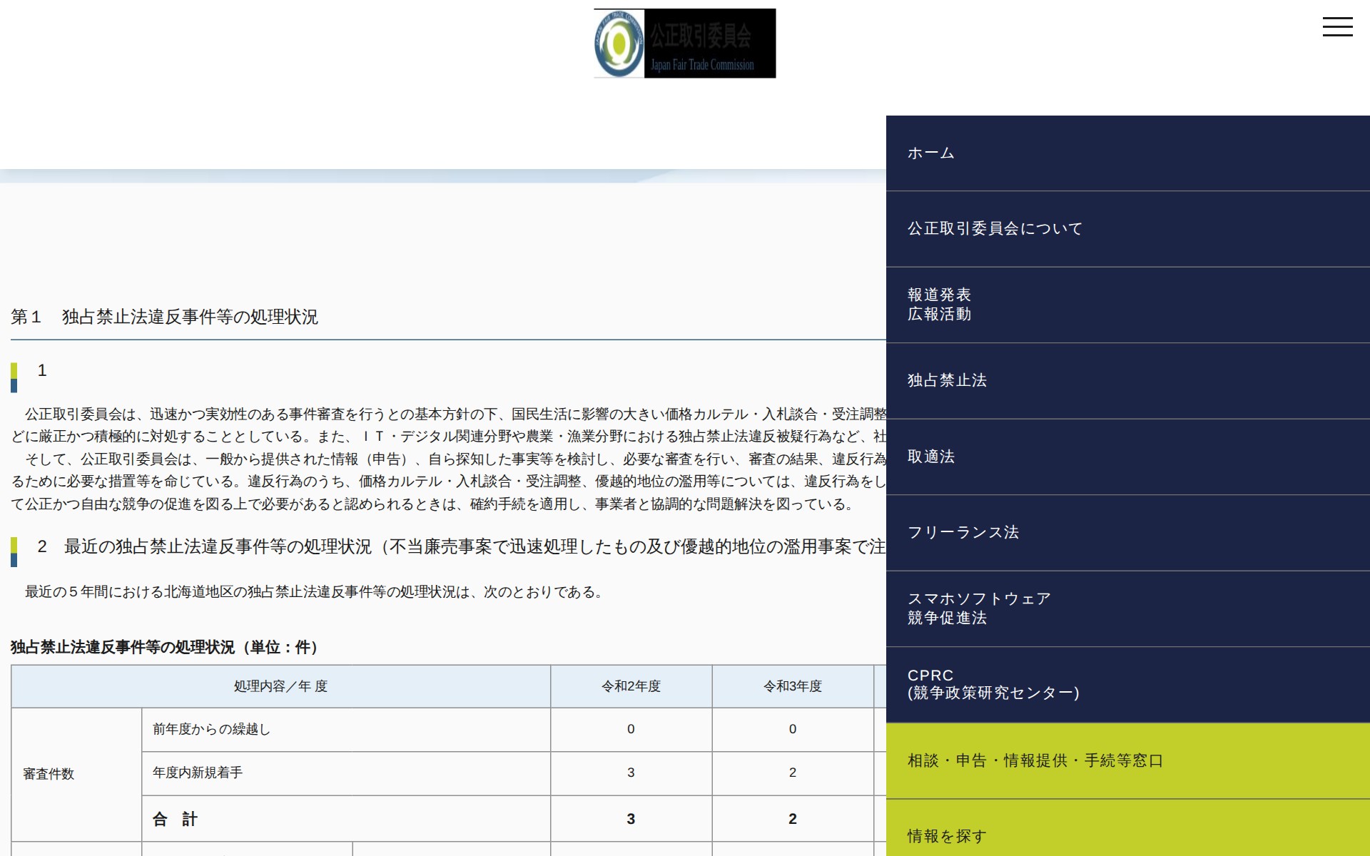 (令和7年6月25日)令和6年度における北海道地区の独占禁止法の運用状況等について | 公正取引委員会