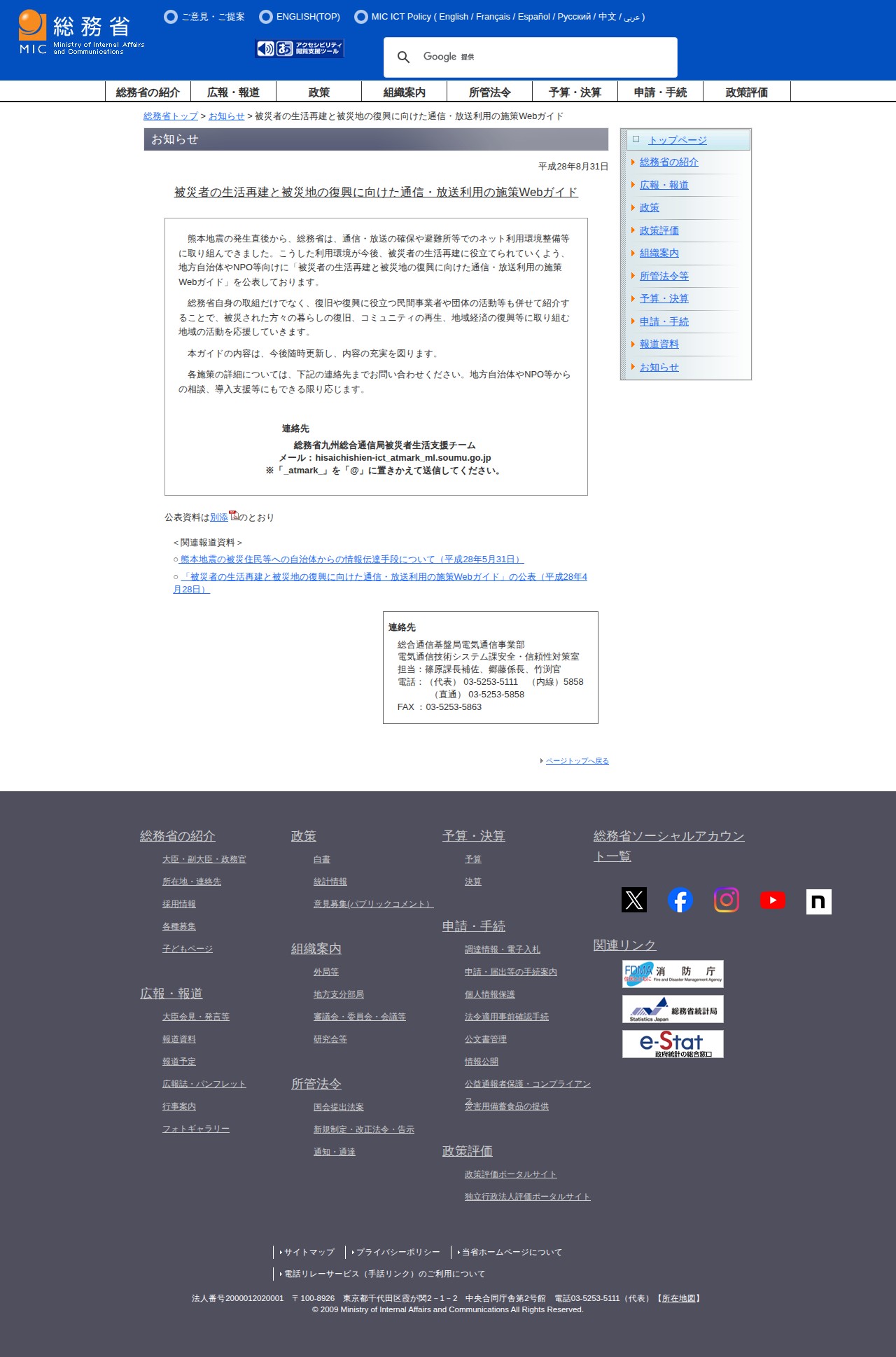 総務省|被災者の生活再建と被災地の復興に向けた通信・放送利用の施策Webガイド