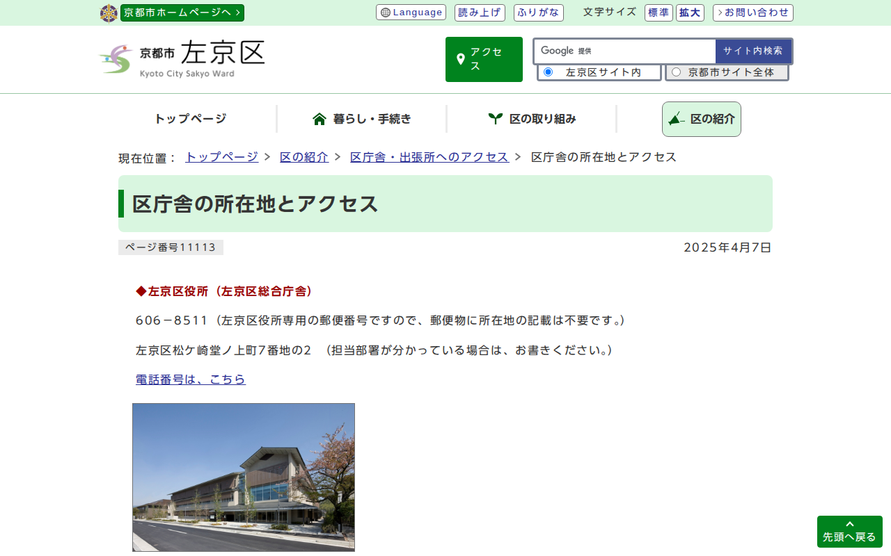 京都市左京区役所:区庁舎の所在地とアクセス
