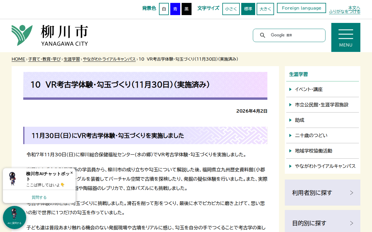2026年4月9日 01:21 JST·www.city.yanagawa.fukuoka.jp