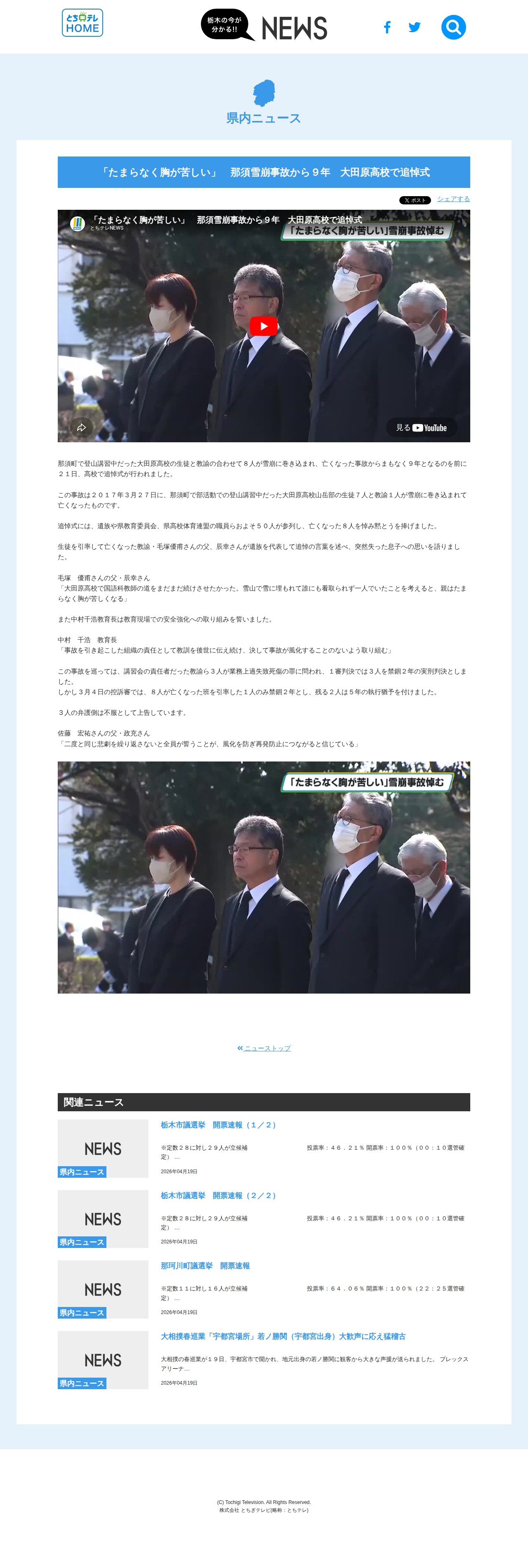 「たまらなく胸が苦しい」 那須雪崩事故から9年 大田原高校で追悼式-NEWS - とちテレ - 保存されたスクリーンショット
