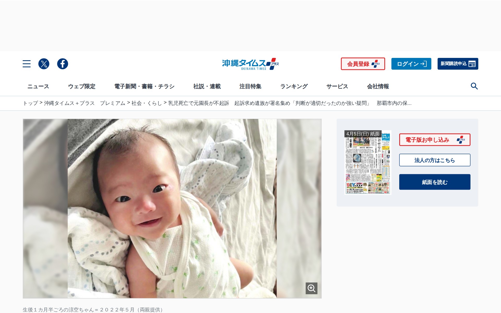 乳児死亡で元園長が不起訴 起訴求め遺族が署名集め「判断が適切だったのか強い疑問」 那覇市内の保育園で2022年事故 | 沖縄タイムス+プラス - 保存されたスクリーンショット