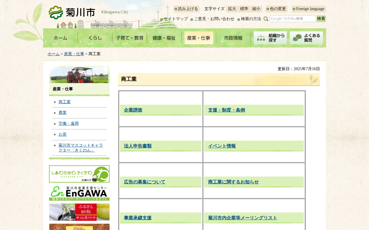 http://www.city.kikugawa.shizuoka.jp/sangyou/shoukougyou/index.html2026年4月9日 07:09 JST•アーカイブページ・viewer・ダウンロードは、この保存版を基準に表示されます。