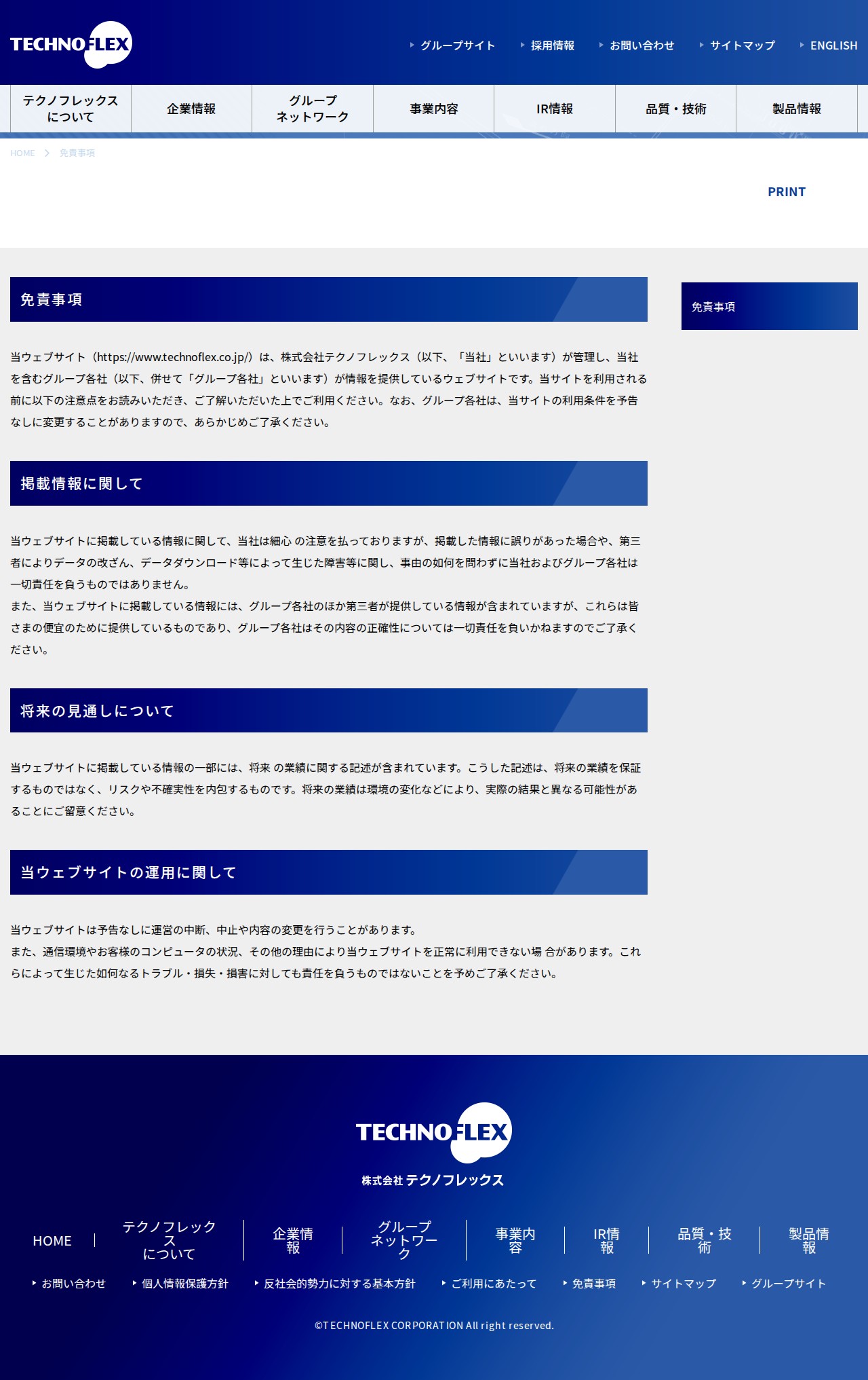 免責事項|株式会社テクノフレックス - 保存されたスクリーンショット