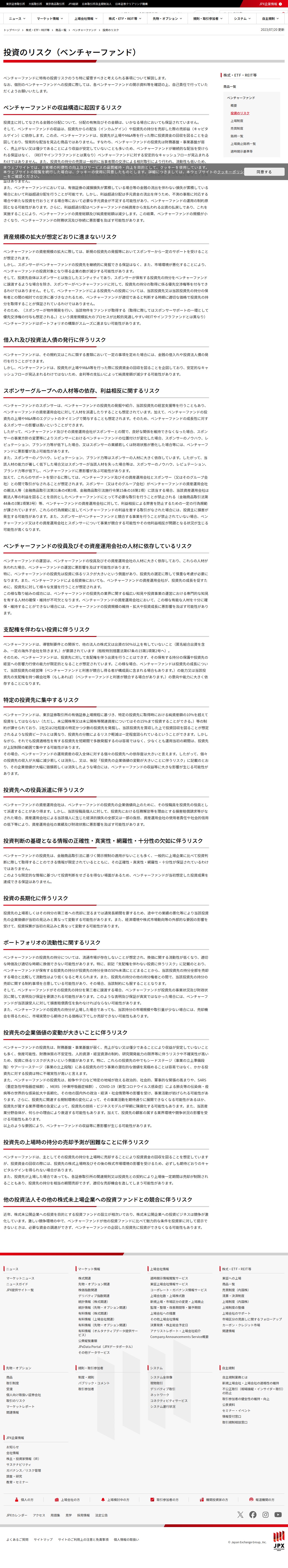 投資のリスク(ベンチャーファンド) | 日本取引所グループ