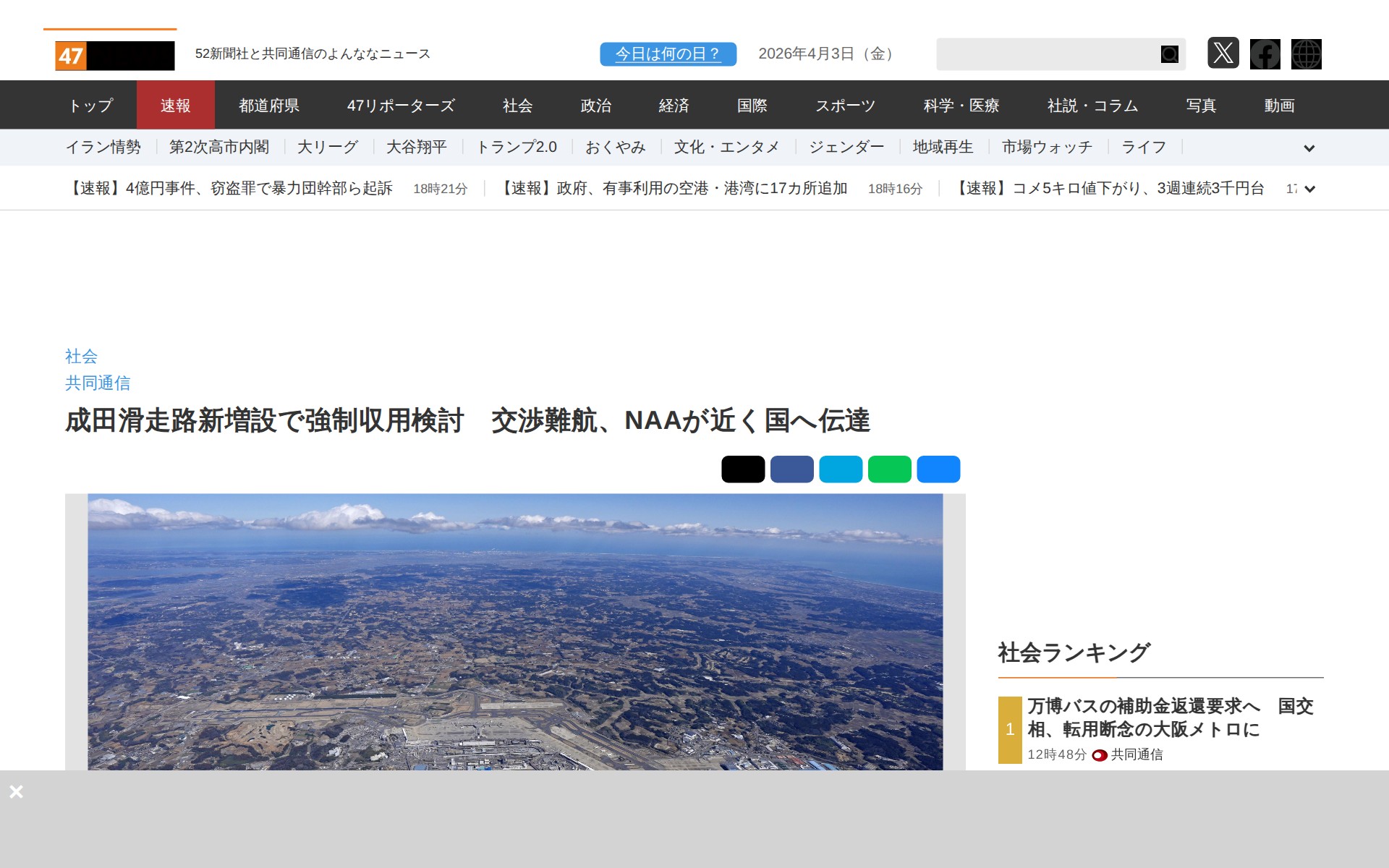 成田滑走路新増設で強制収用検討 交渉難航、NAAが近く国へ伝達|47NEWS(よんななニュース)