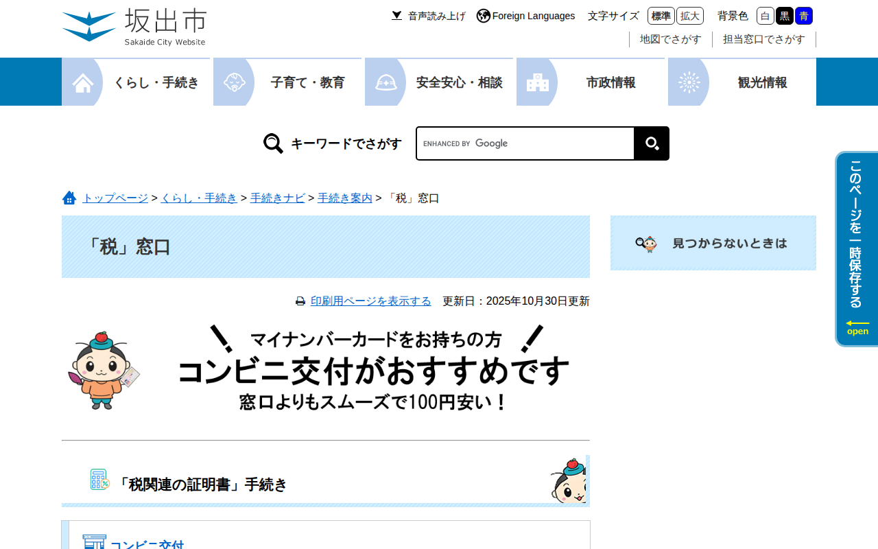「税」窓口 - 坂出市ホームページ