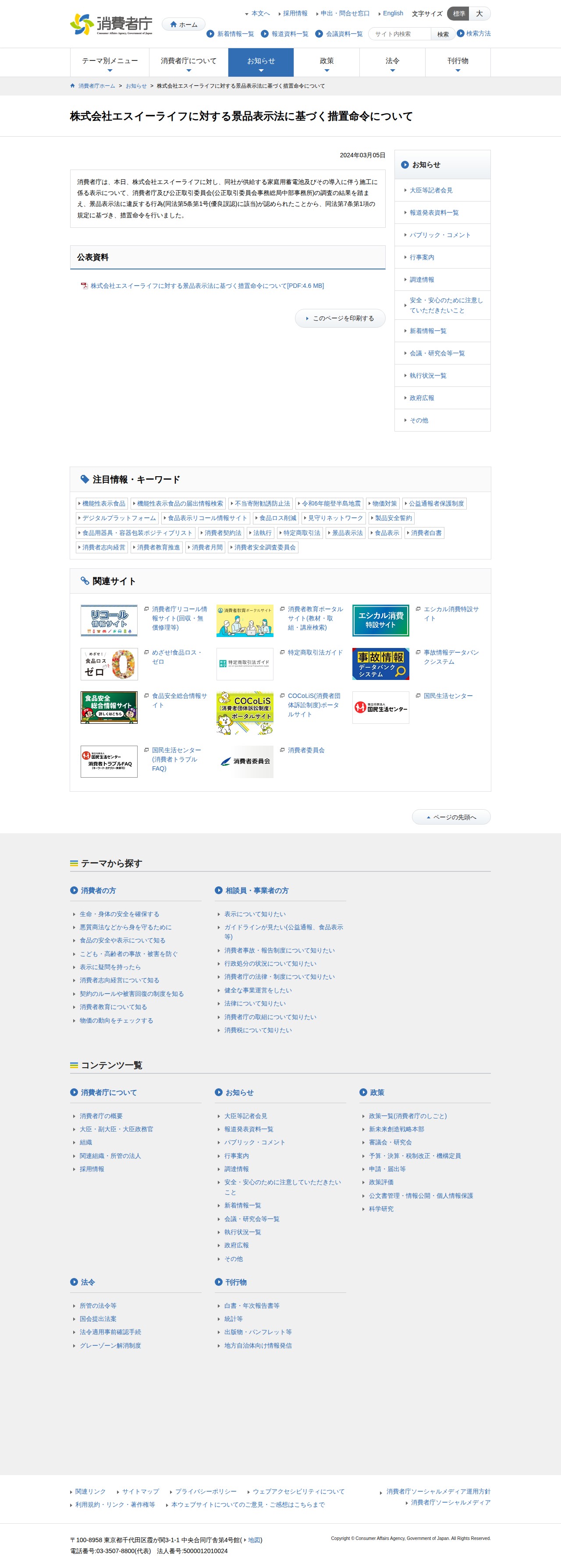株式会社エスイーライフに対する景品表示法に基づく措置命令について | 消費者庁 - 保存されたスクリーンショット